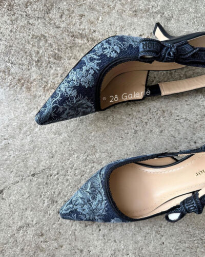 J’ADior Blue Multicolor Embroidered Demin with Toile de Jouy Sauvage Motif Slingback Pump