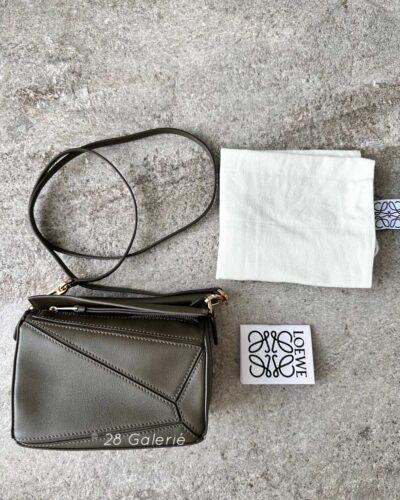 Loewe Khaki Mini Puzzle Bag in Calfskin Leather and Gold Hardware