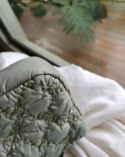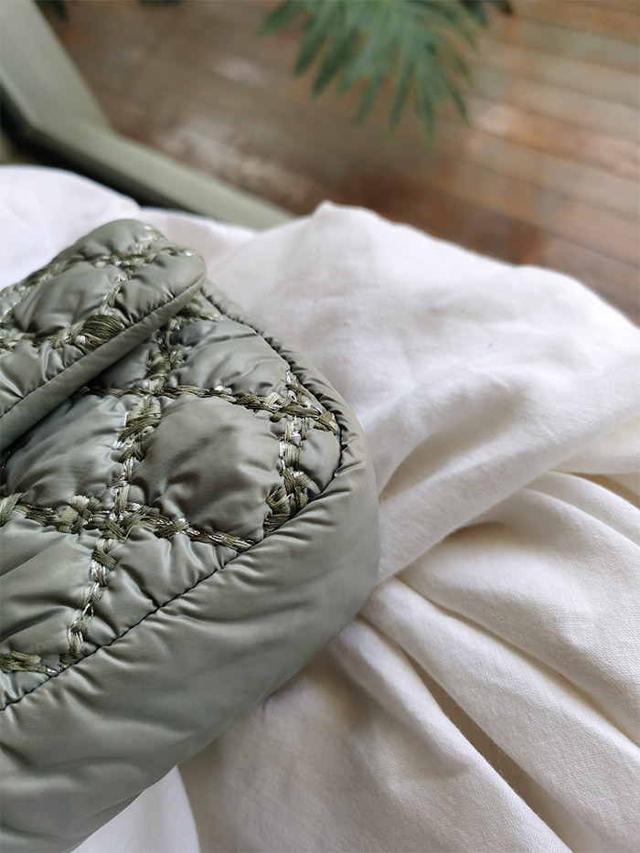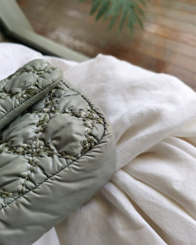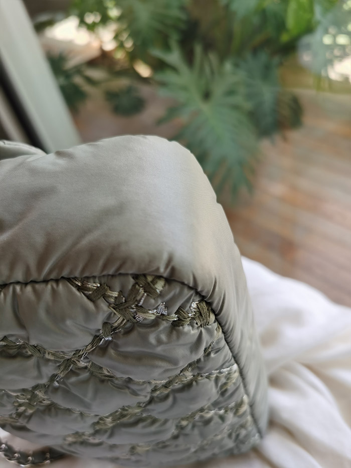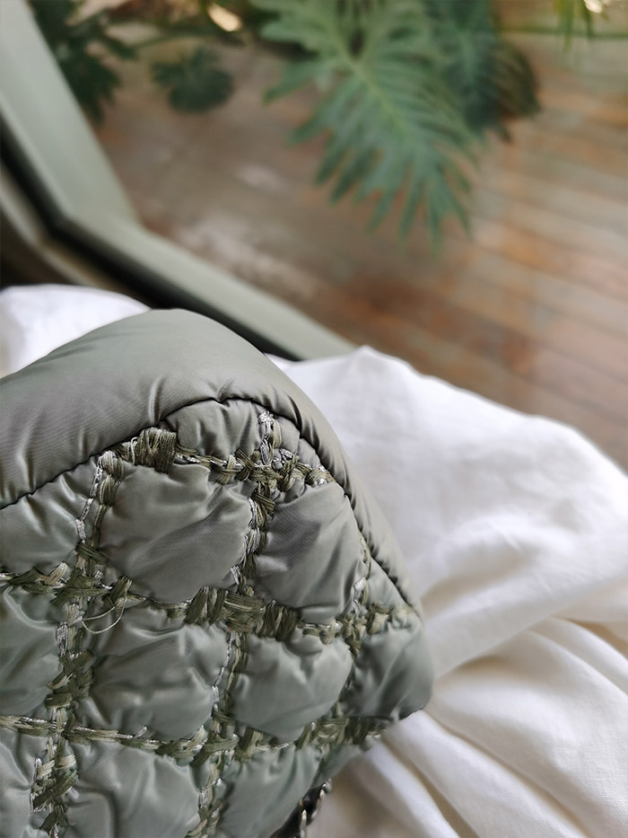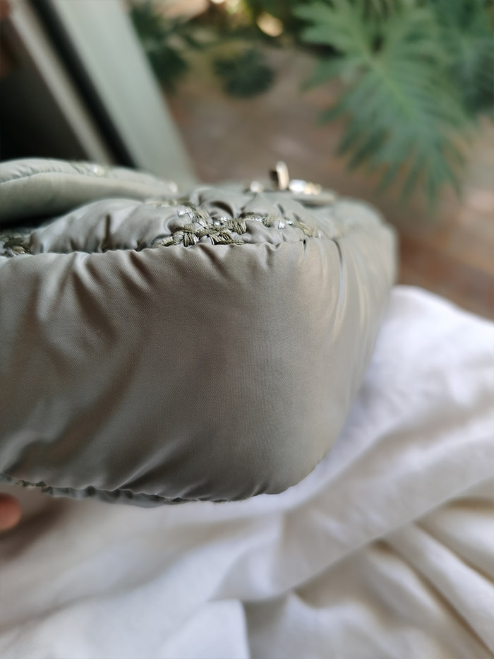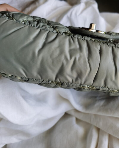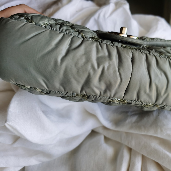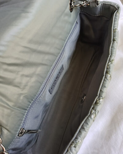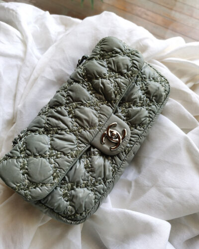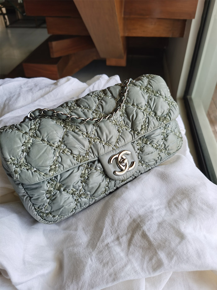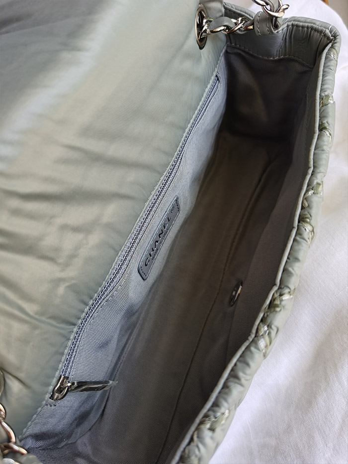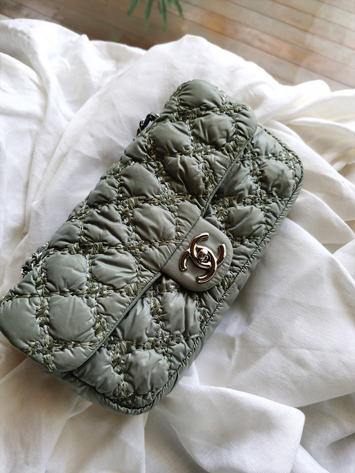 Chanel Sage Bubble Tweed East West Flap in Nylon Fabric and Silver Hardware
