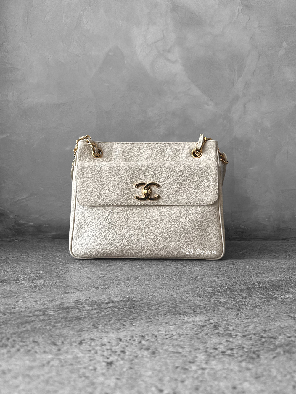 Chanel Cream Vintage Double Tote Bag in Caviar Leather and Gold Hardware