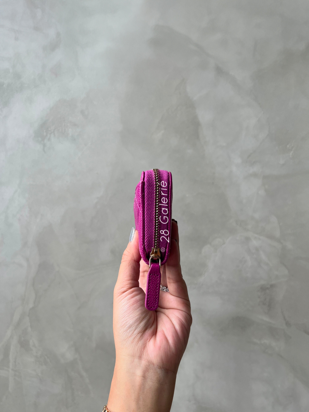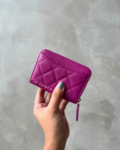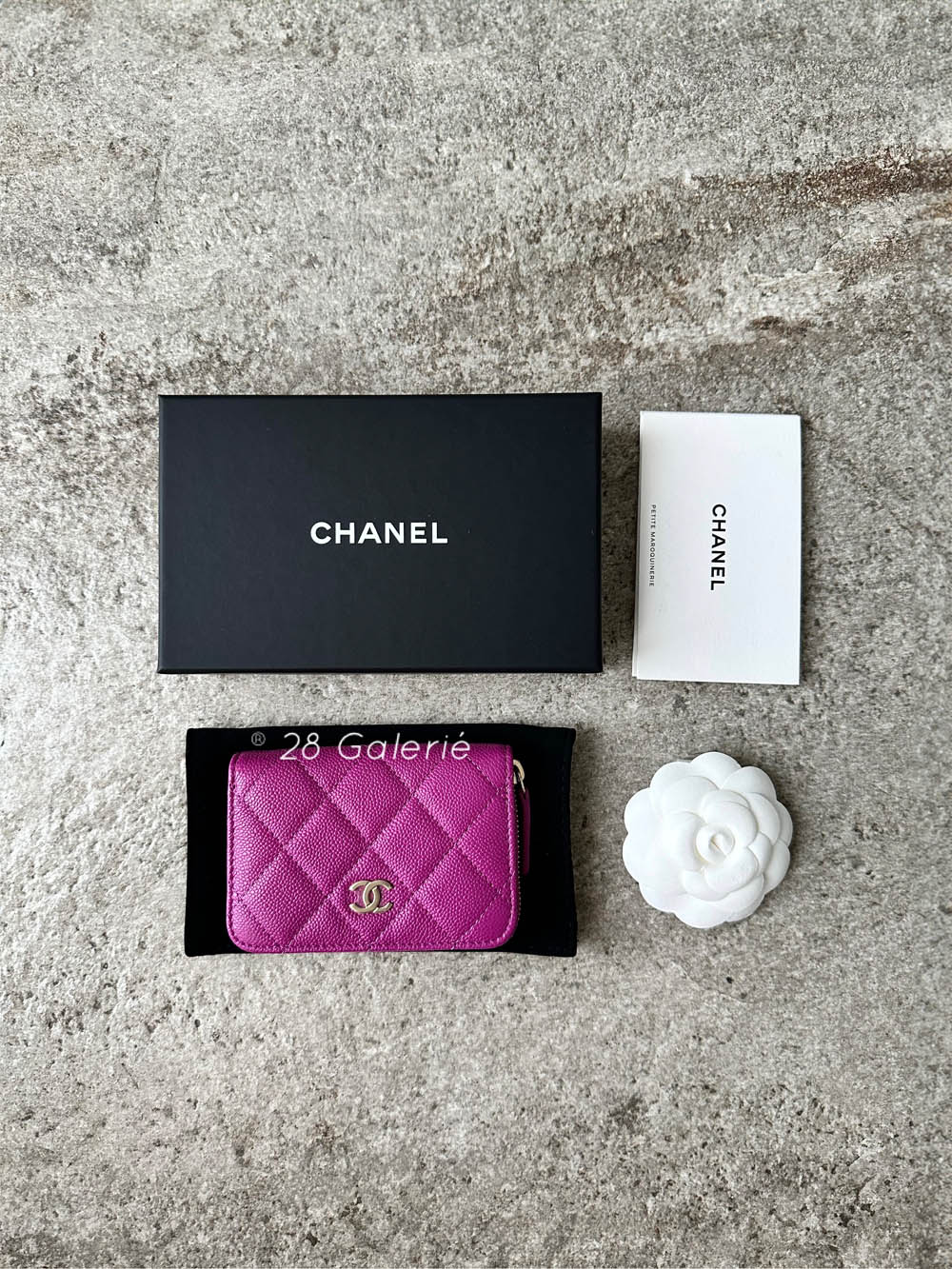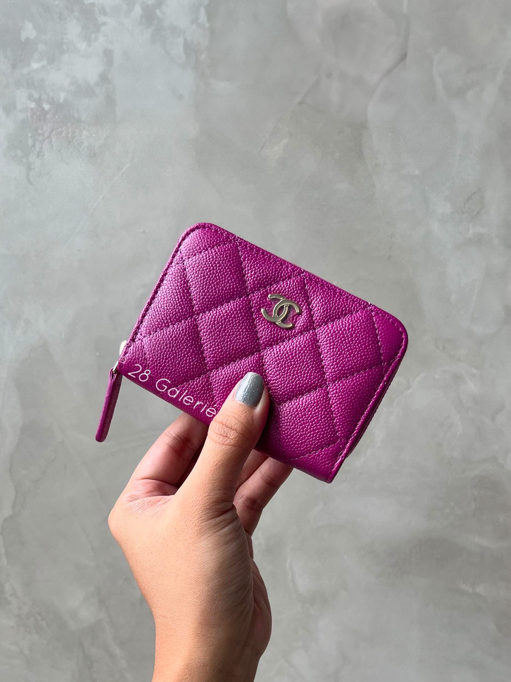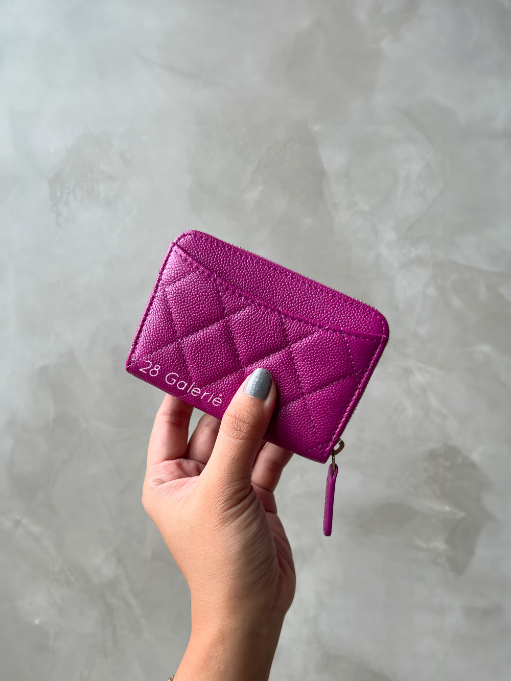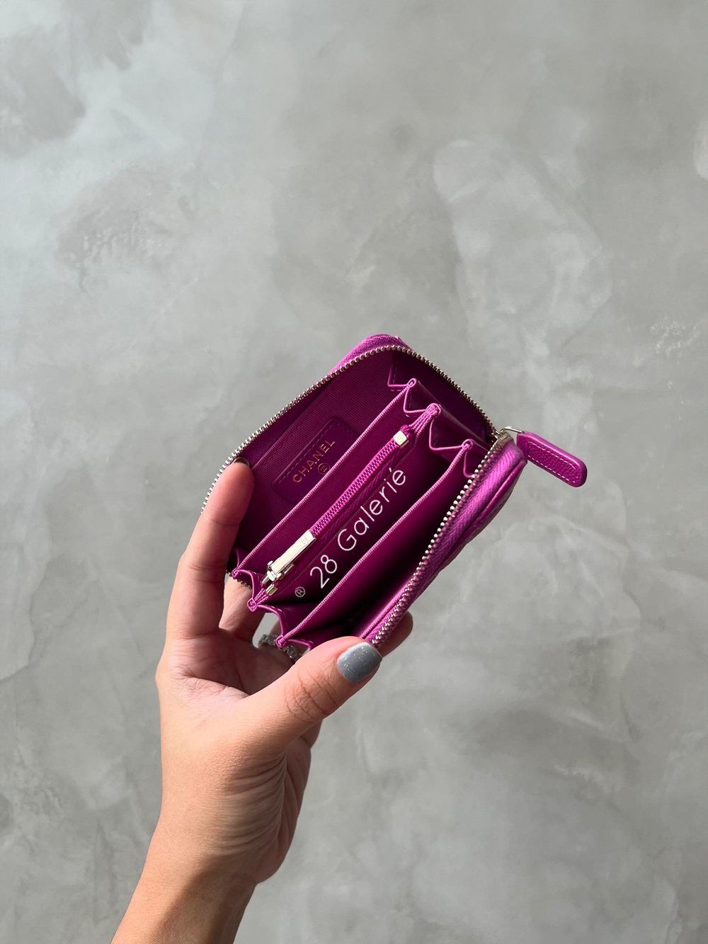 Chanel Fuschia Pink Zippy Card Holder in Caviar Leather and Light Gold Hardware