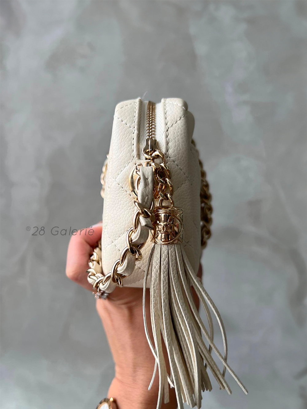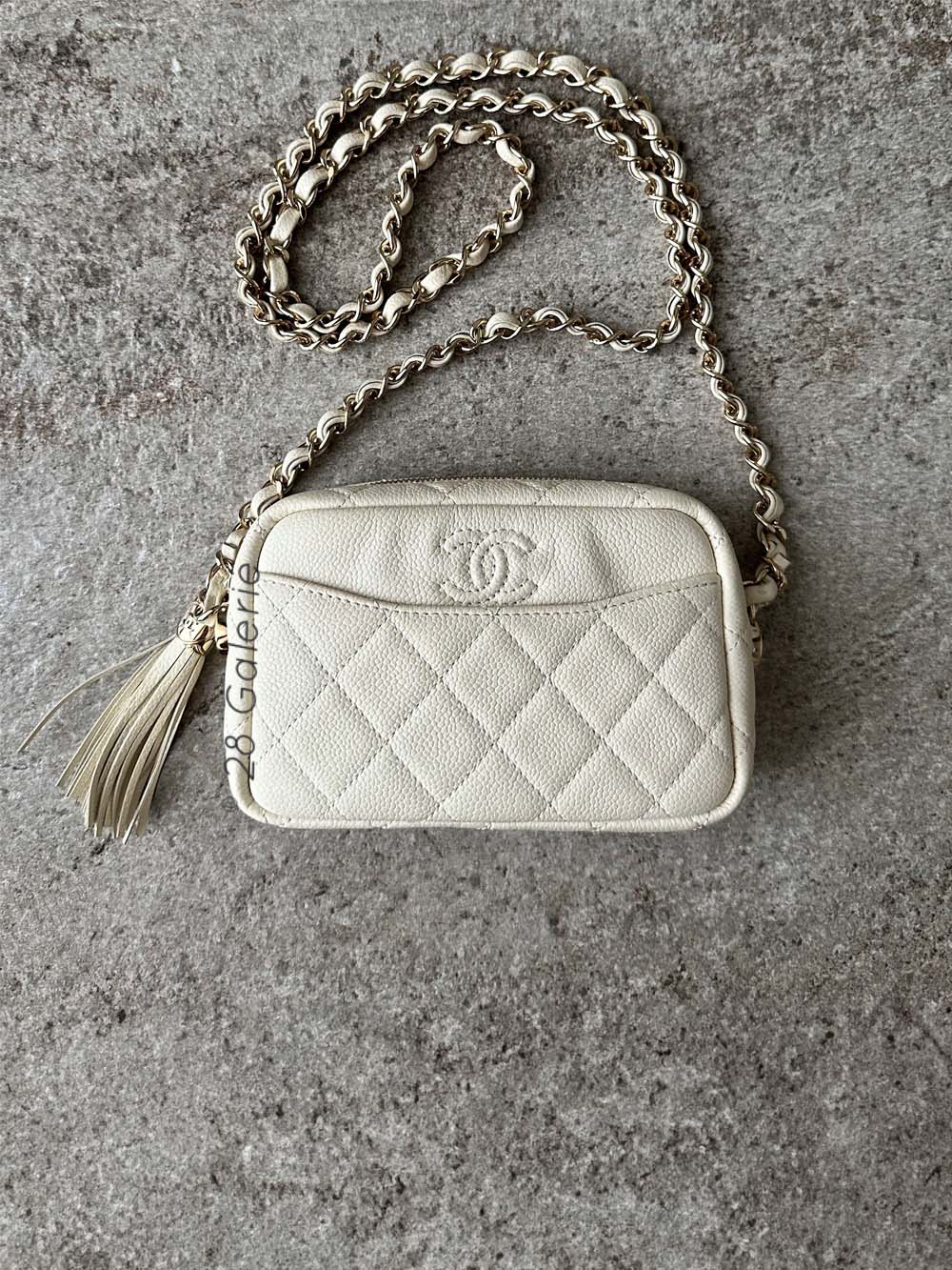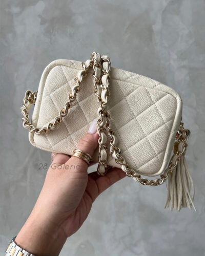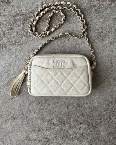 Chanel Ivory Mini Coco Camera Bag in Caviar Leather and Light Gold Hardware