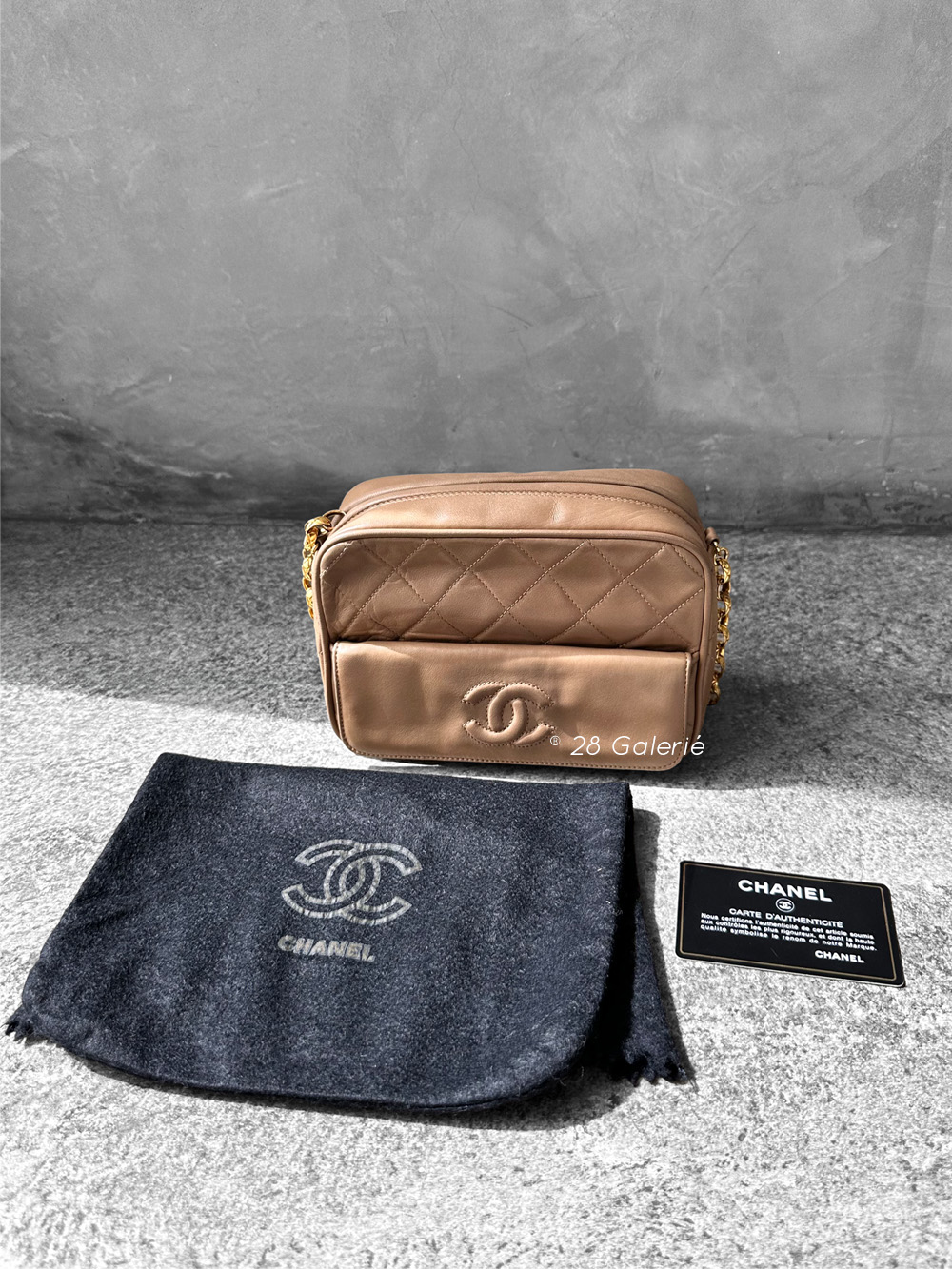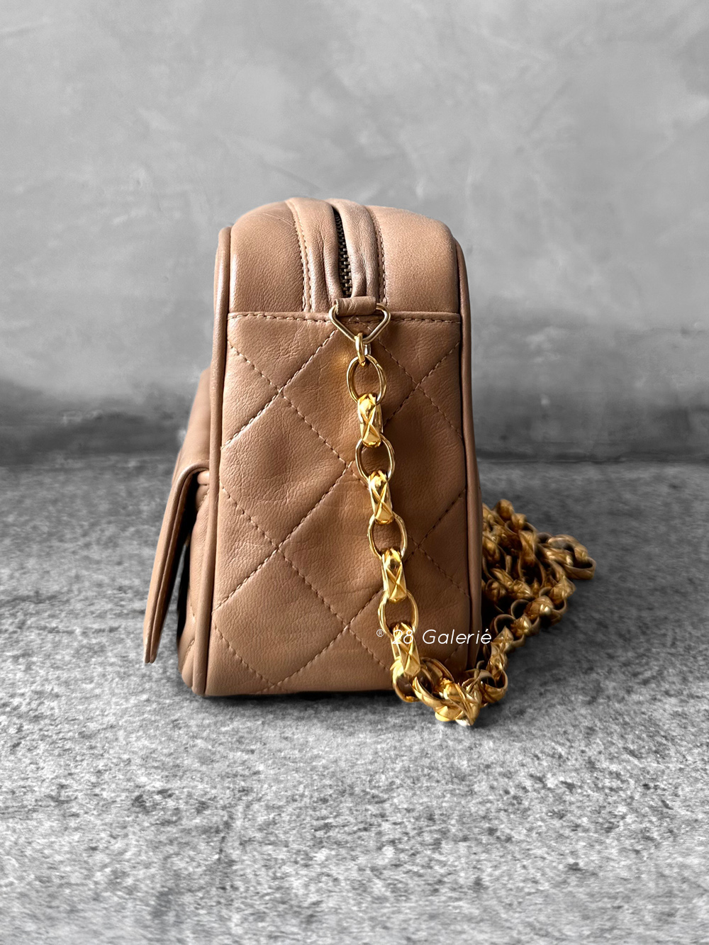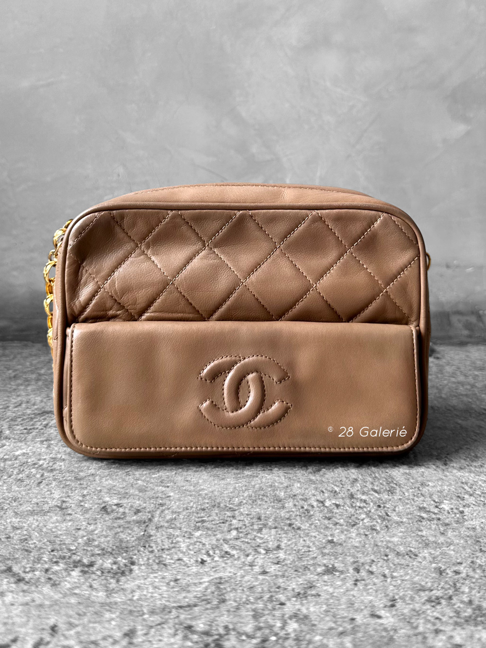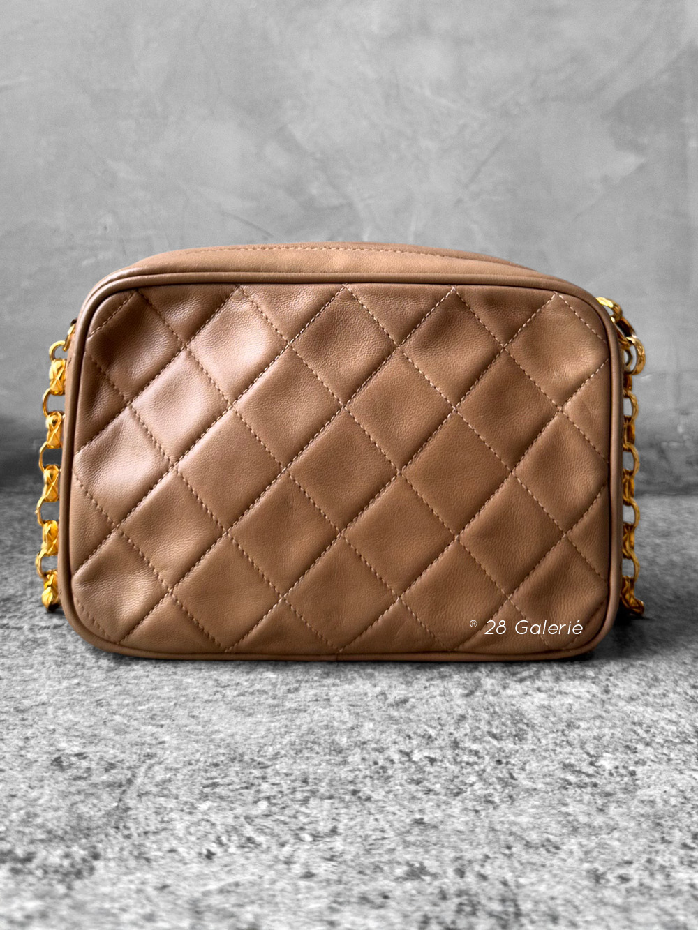 Chanel Dark Beige Camera Bag in Lambskin Leather and Gold Hardware