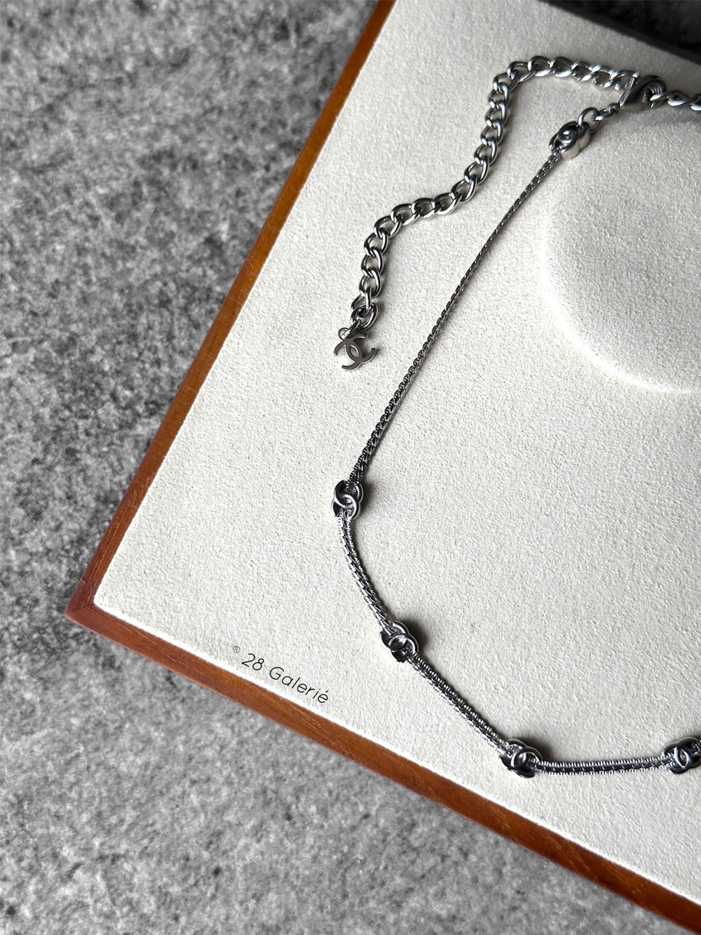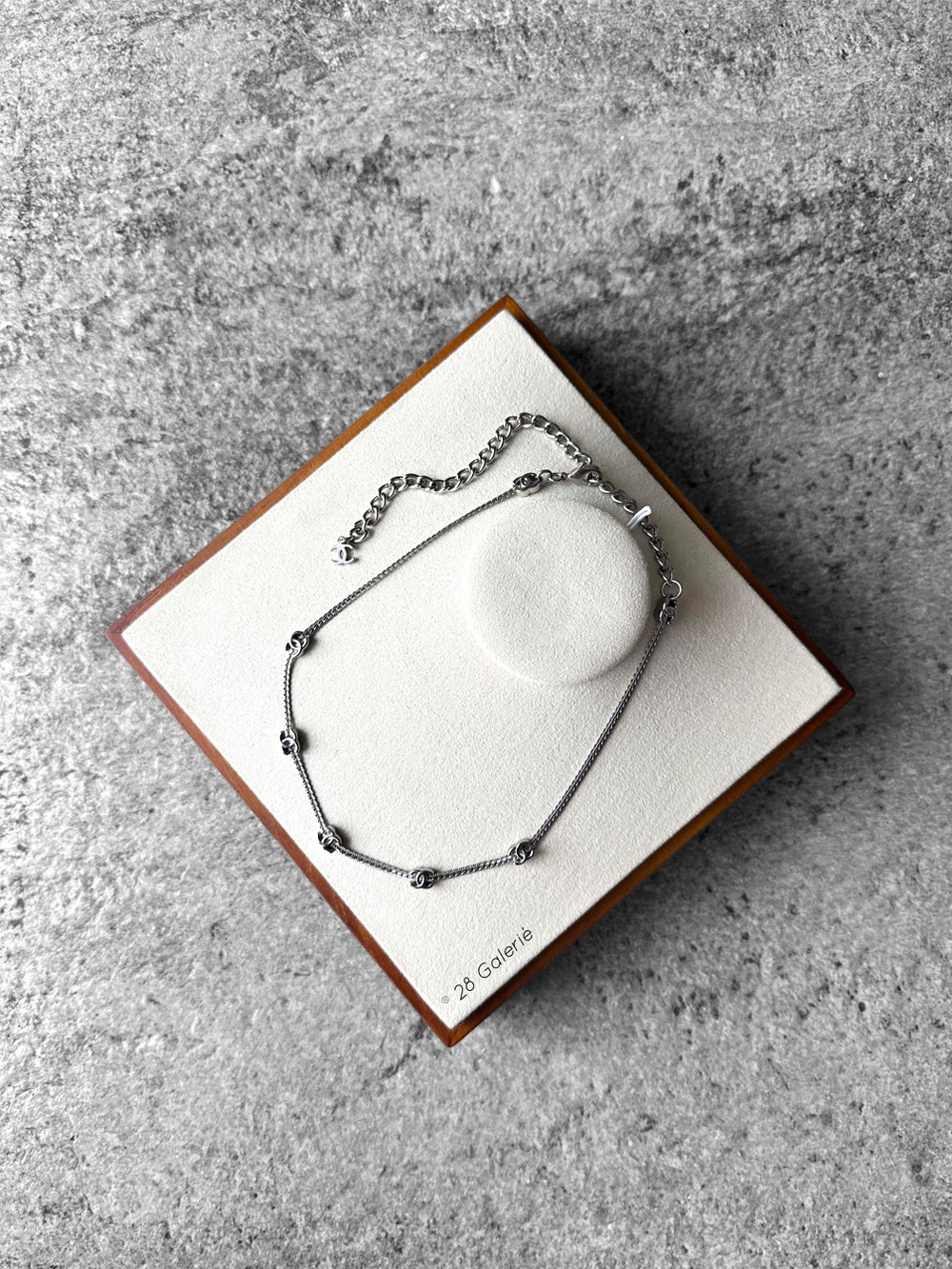Chanel Silver 5 Flower Motifs Logo Necklace in Silver Hardware