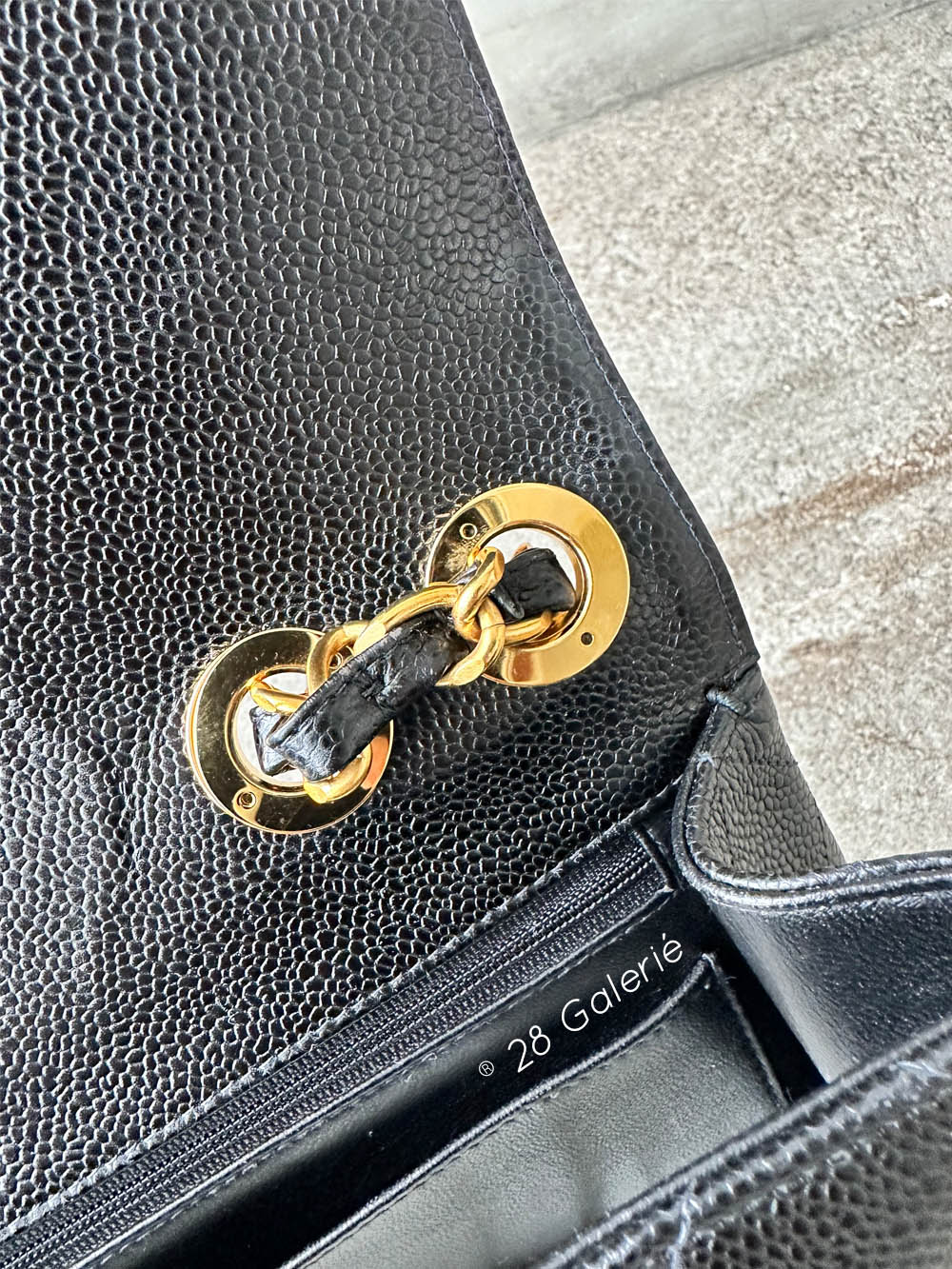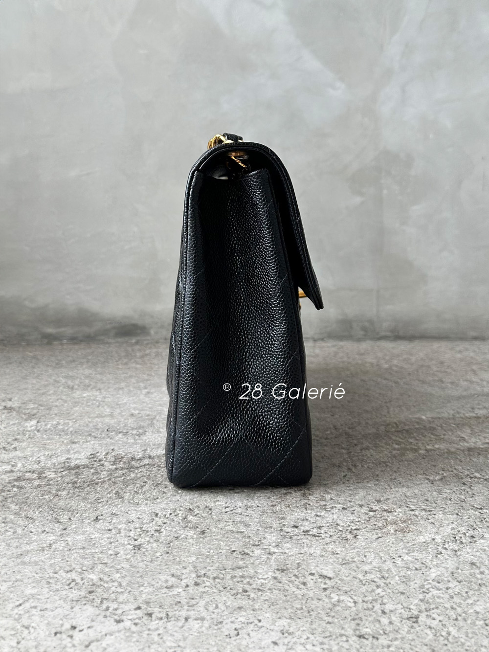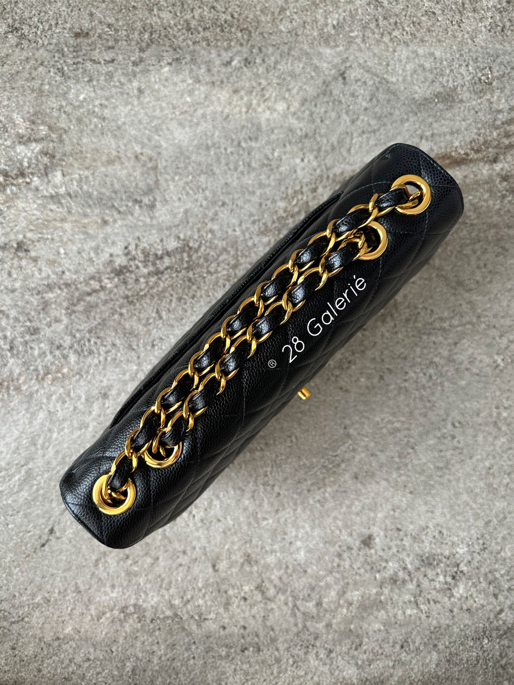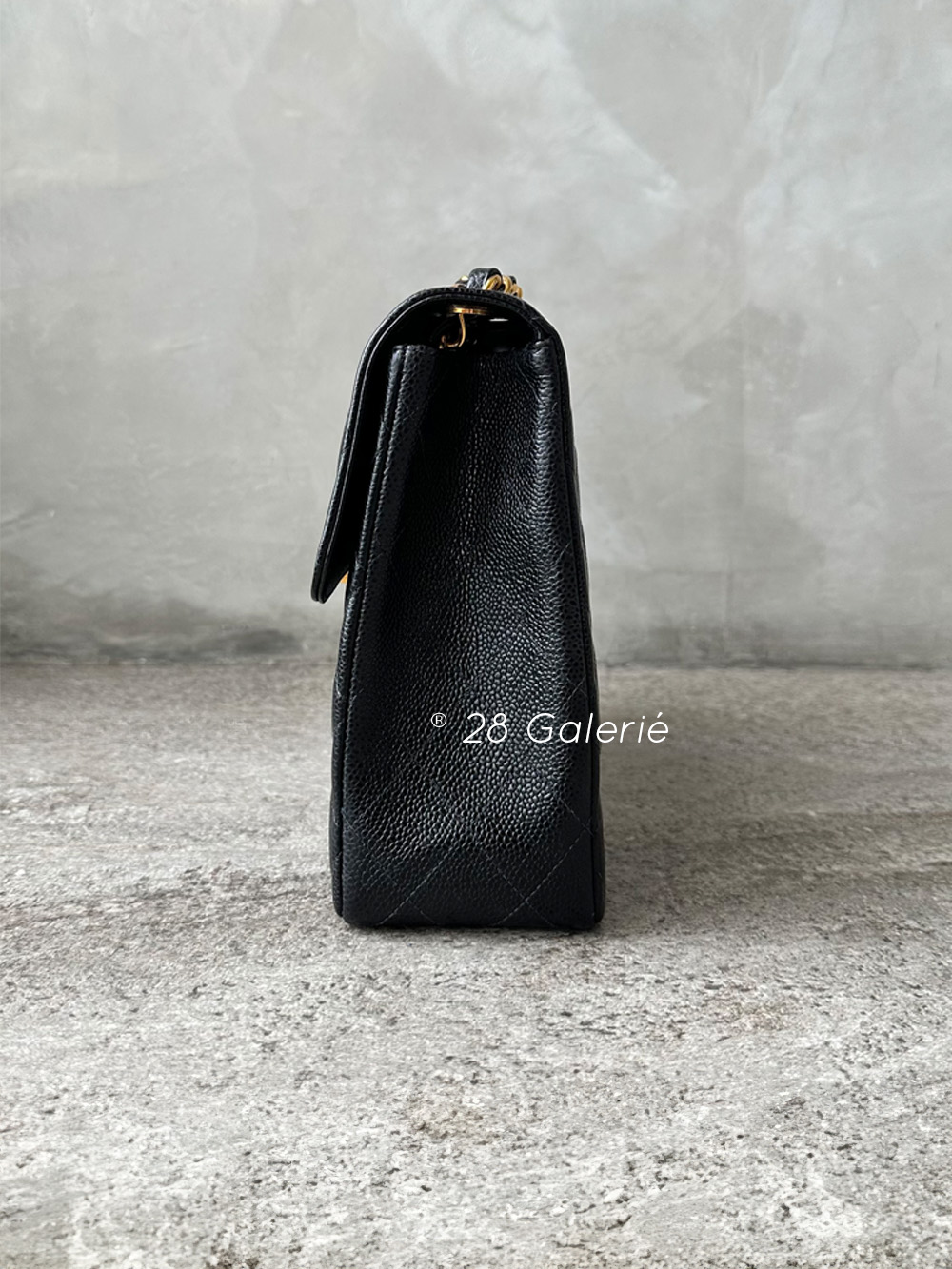 Chanel Vintage Black Jumbo Single Flap in Caviar Leather and 24k Gold Hardware
