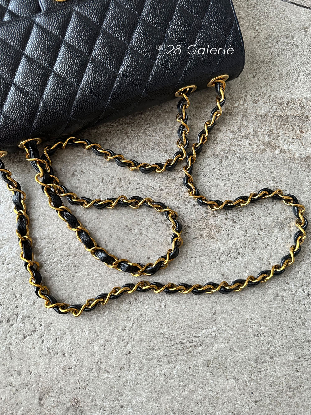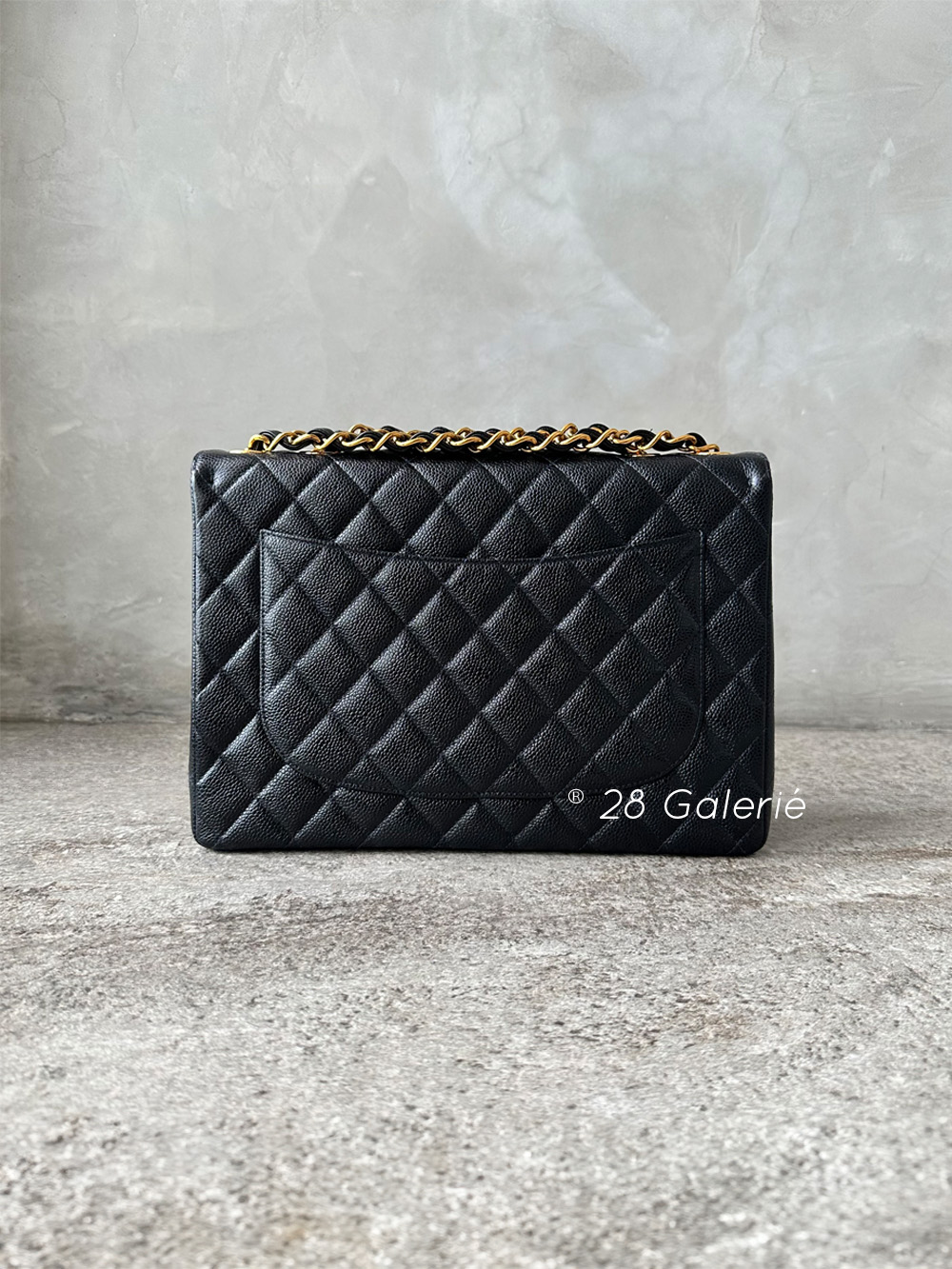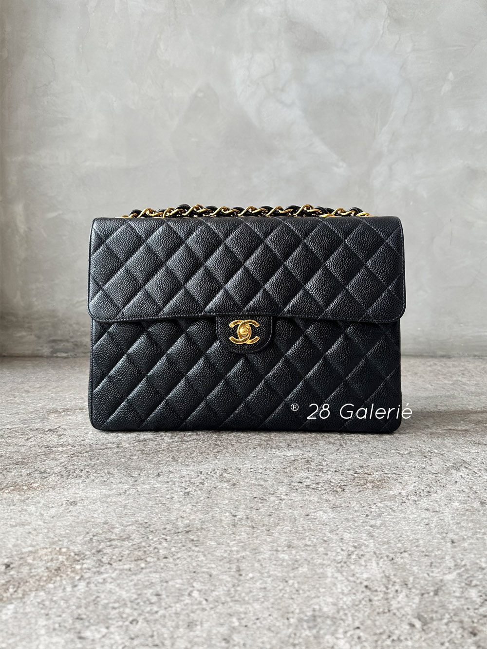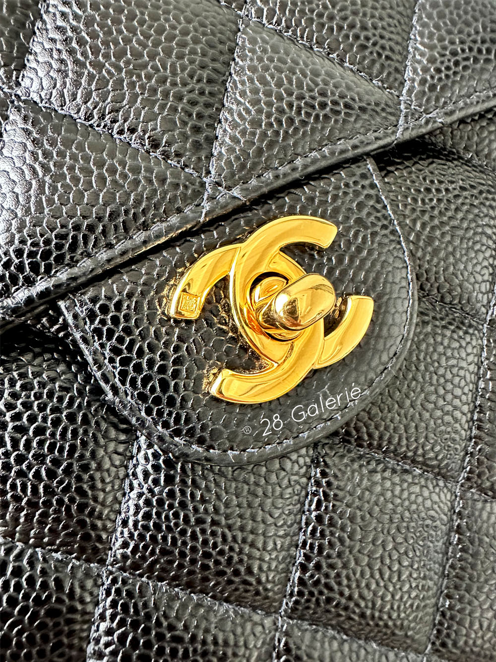 Chanel Vintage Black Jumbo Single Flap in Caviar Leather and 24k Gold Hardware