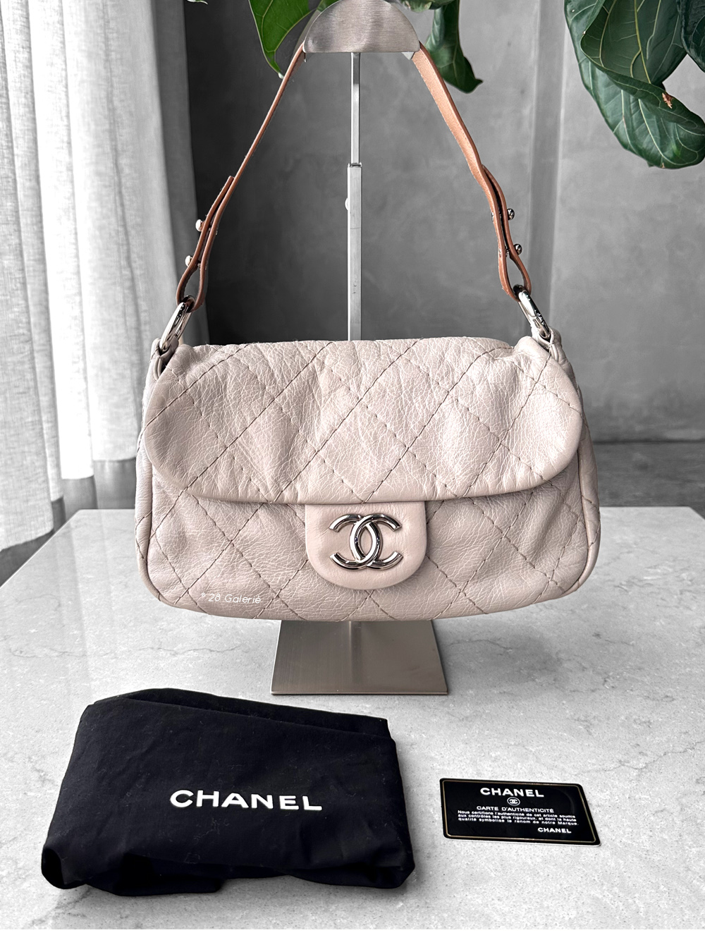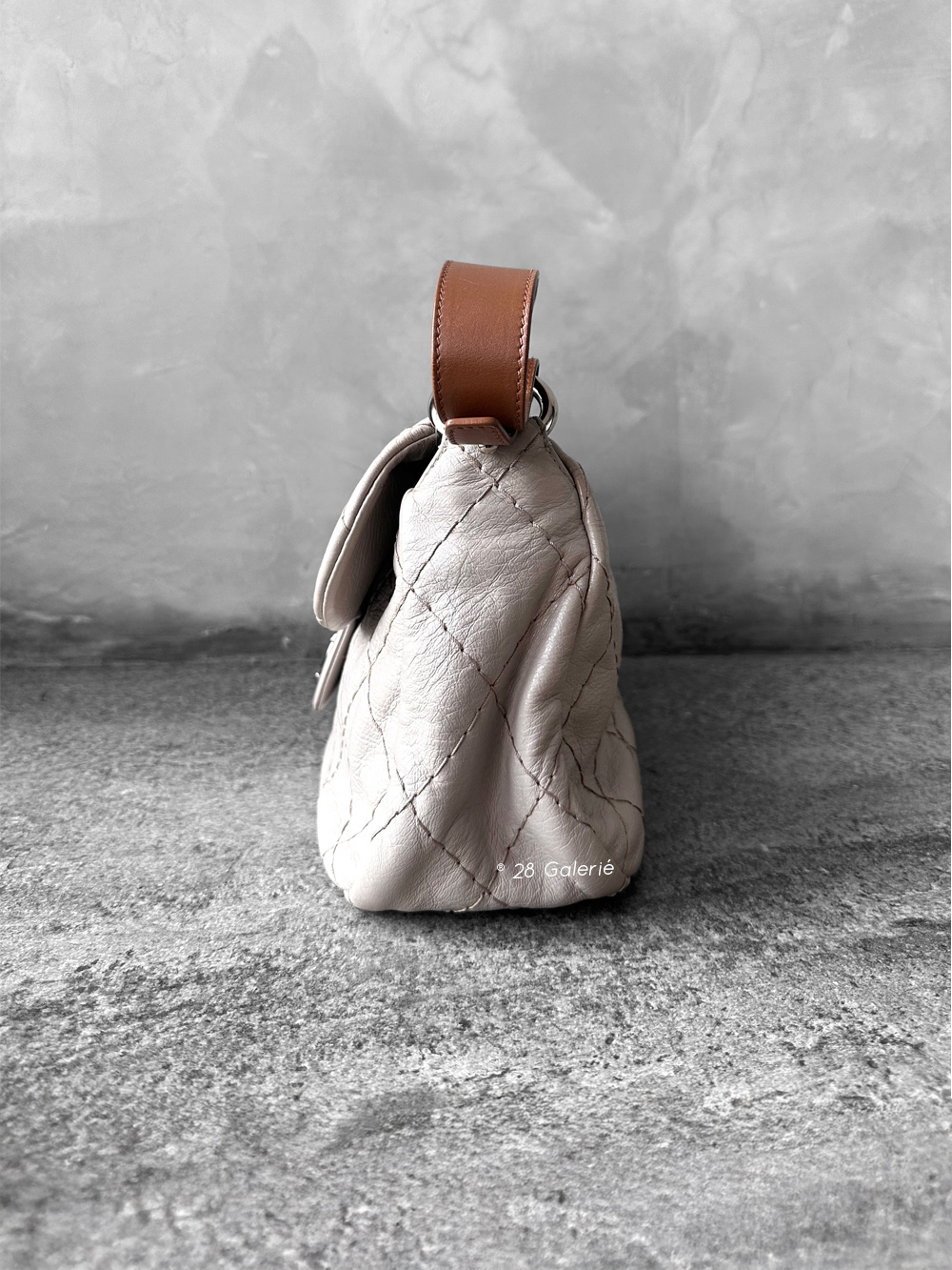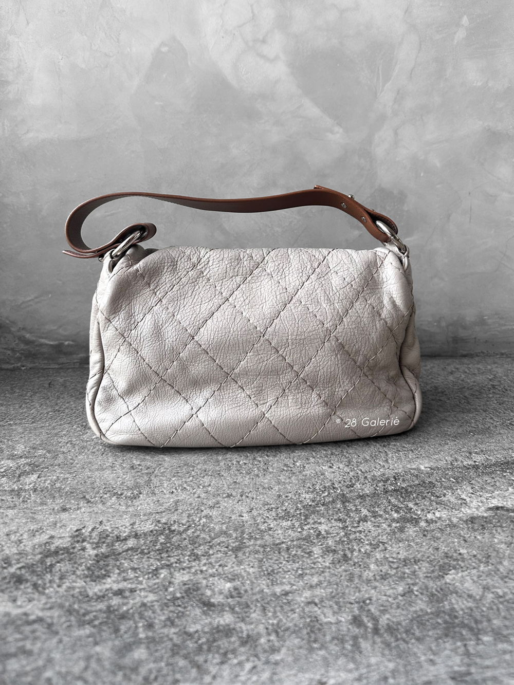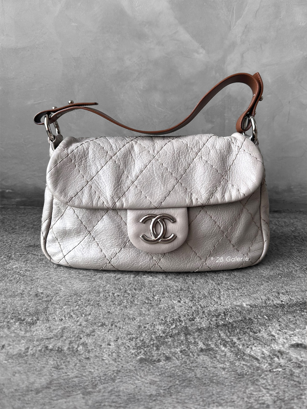 Chanel Vintage Grey Flap in Calfskin Leather with Brown Shoulder Strap and Silver Hardware Inbox