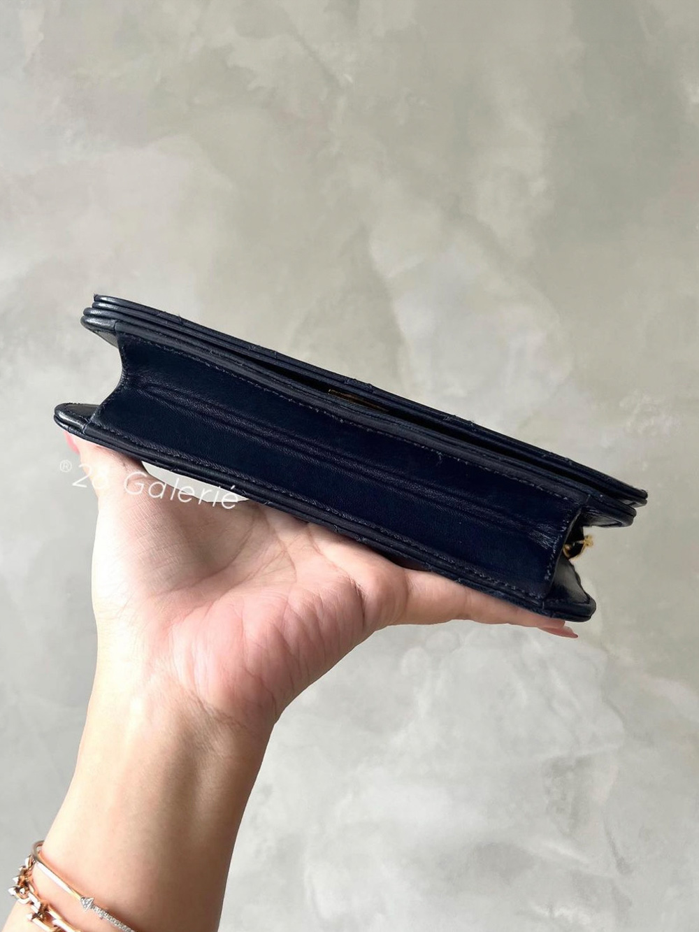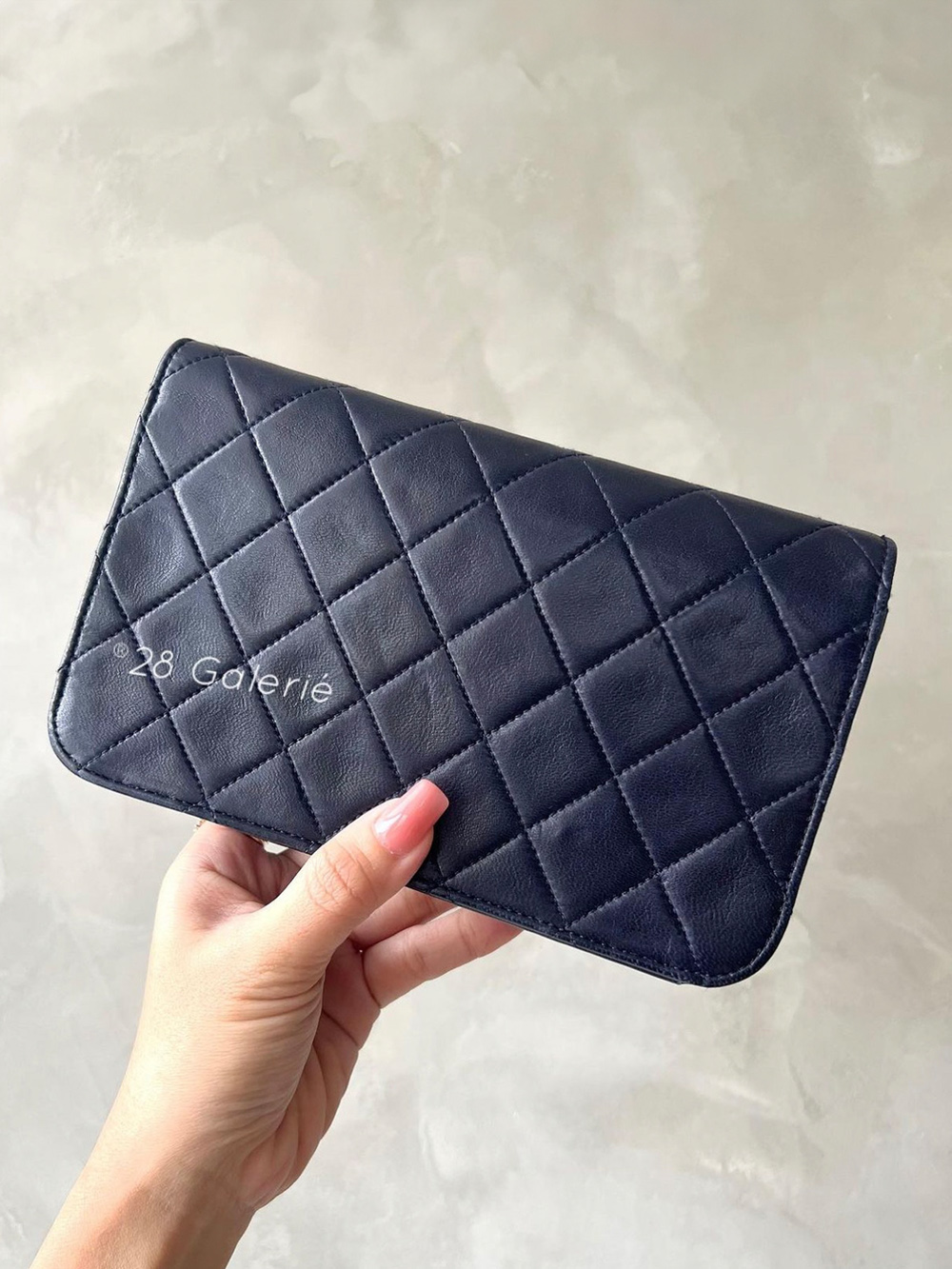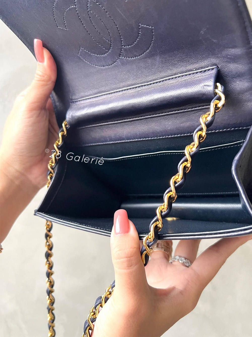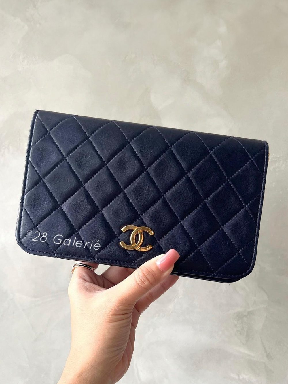Chanel Vintage Navy Mini Full Flap in Lambskin Leather and 24K Gold Hardware Series 2