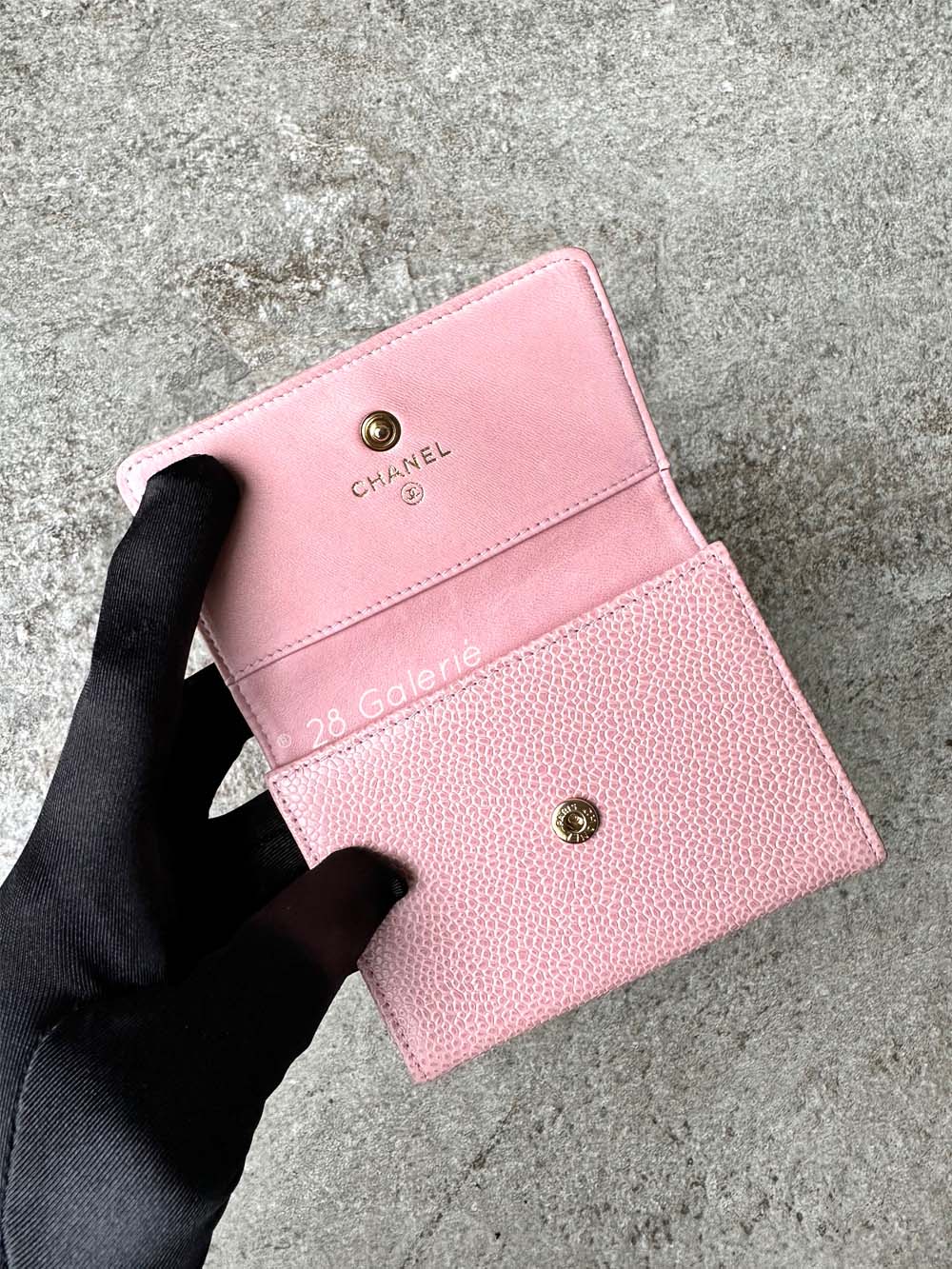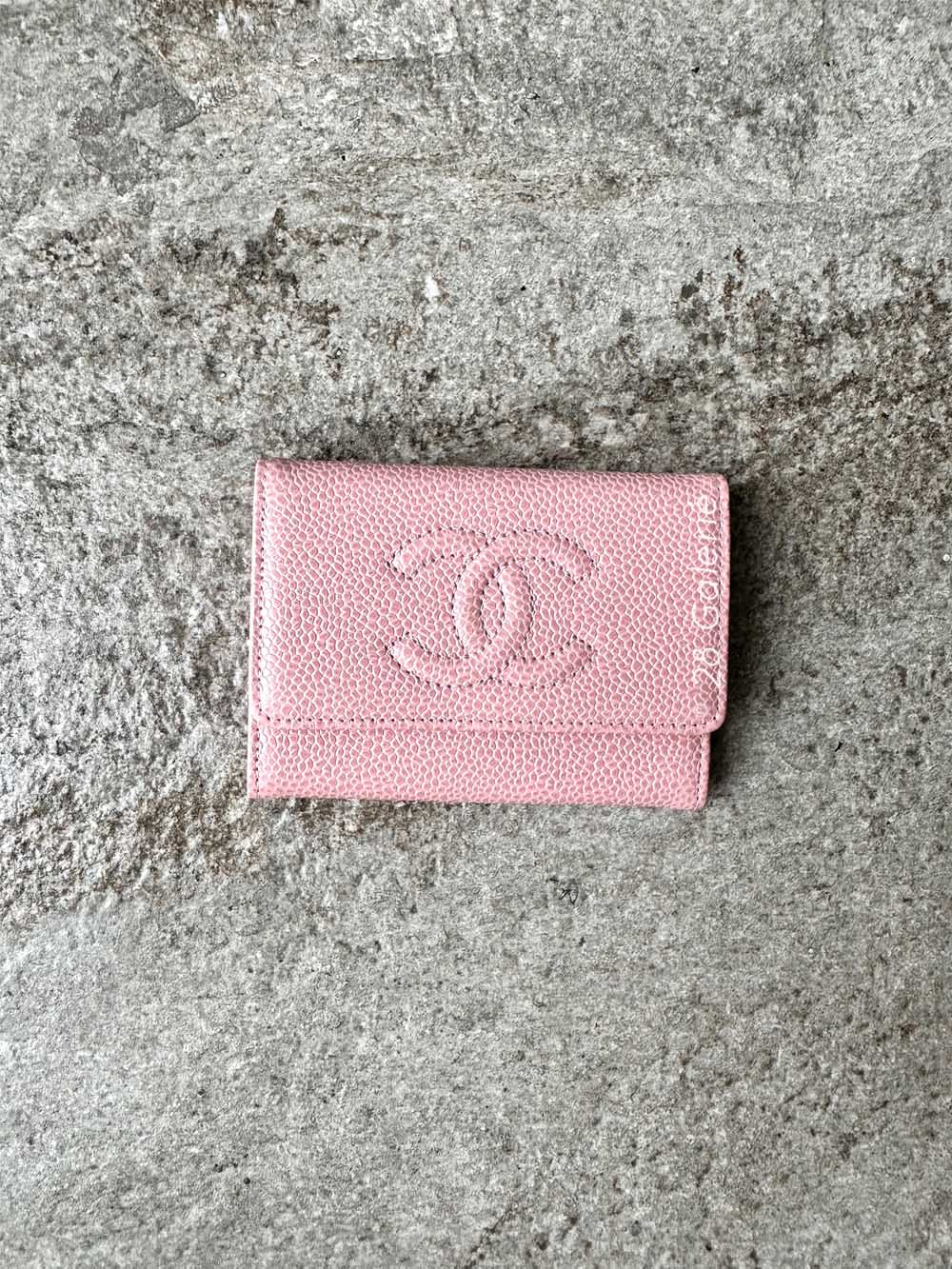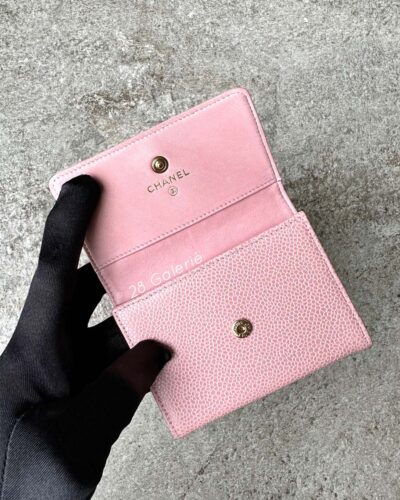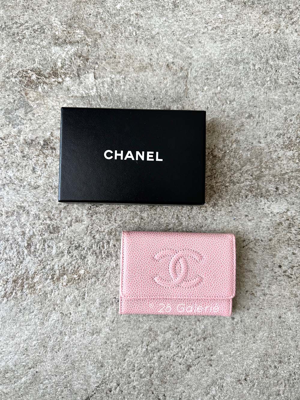 Chanel Vintage Sakura Card Case in Caviar Leather and 24k Gold Hardware