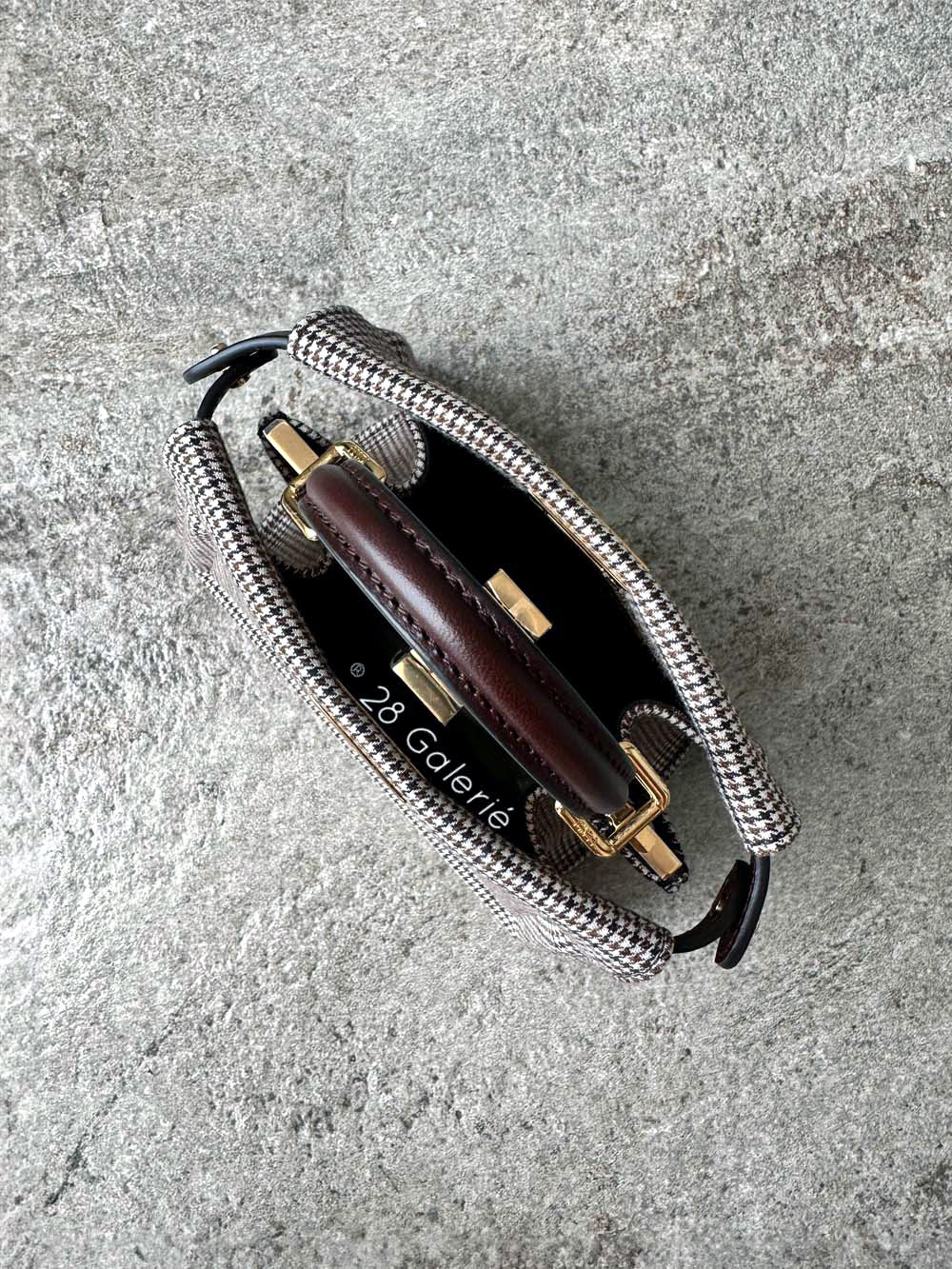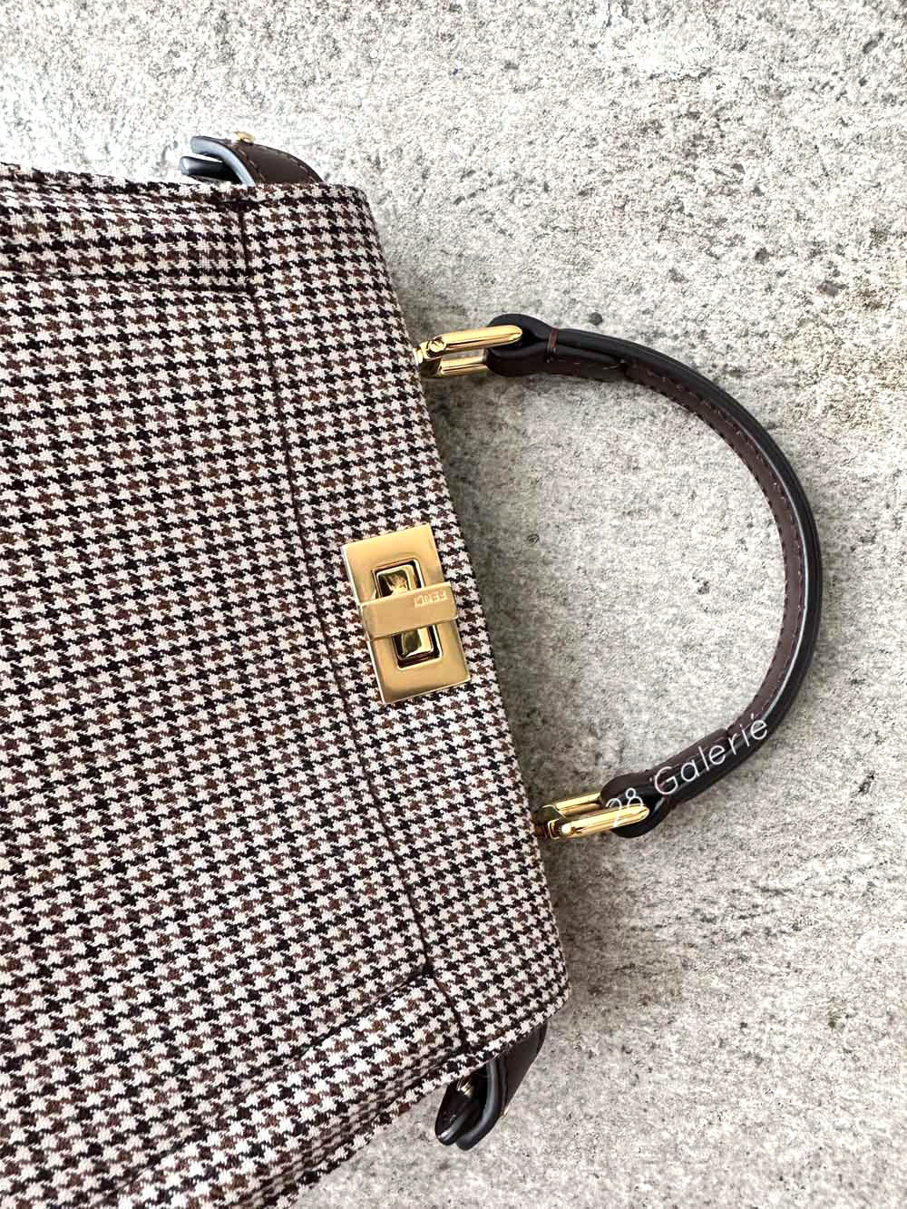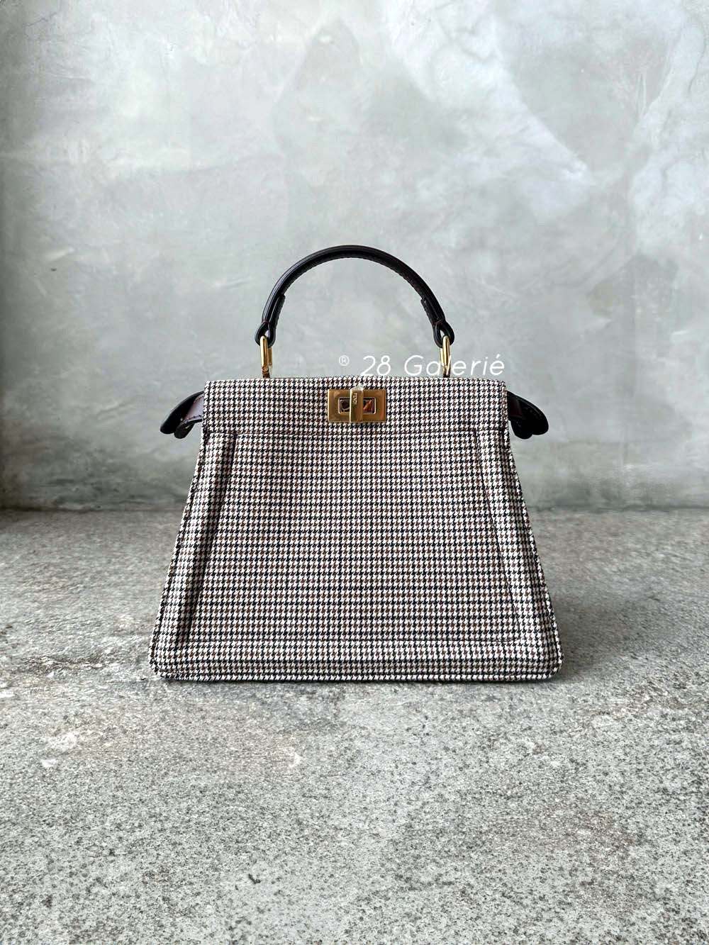 Tired of leather bags? Turn it up a notch and own this very iconic Peekaboo crafted in houndstooth fabric. Quite emblematic in FENDI’s DNA is this peekaboo with a twist of retro feel. It will make such a chic addition to your daily OOTDS!