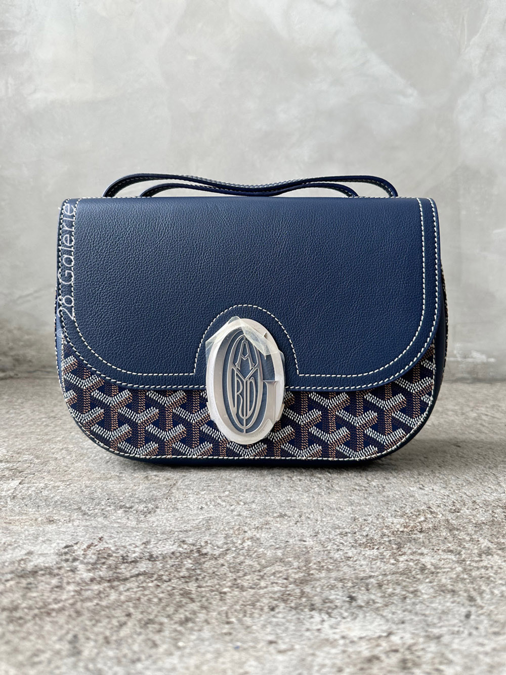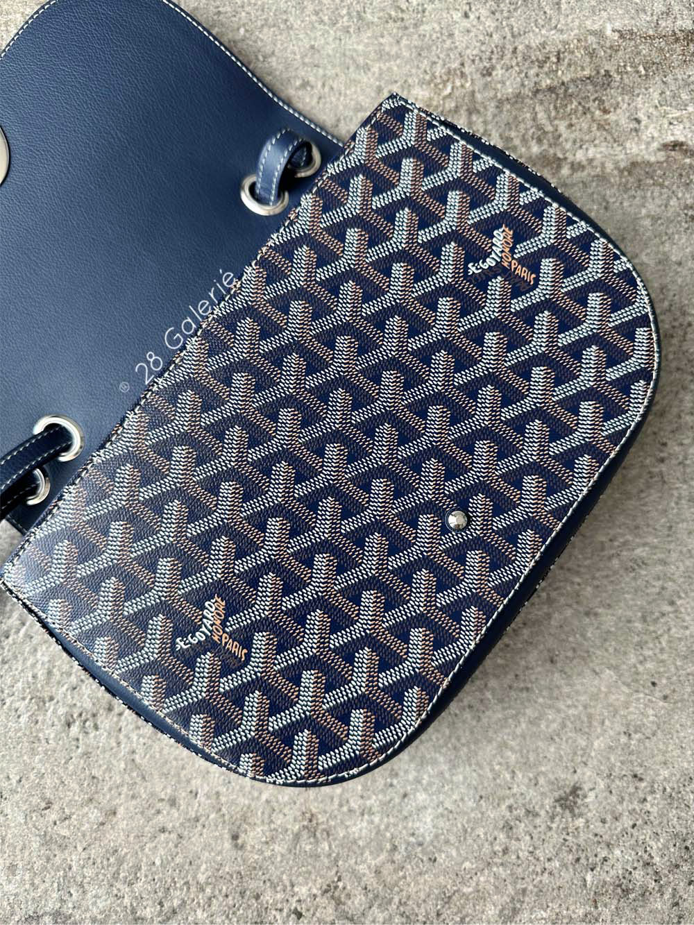 Goyard Navy Blue 233 in Goyardine Canvas and Chevroches Calfskin with Silver Hardware