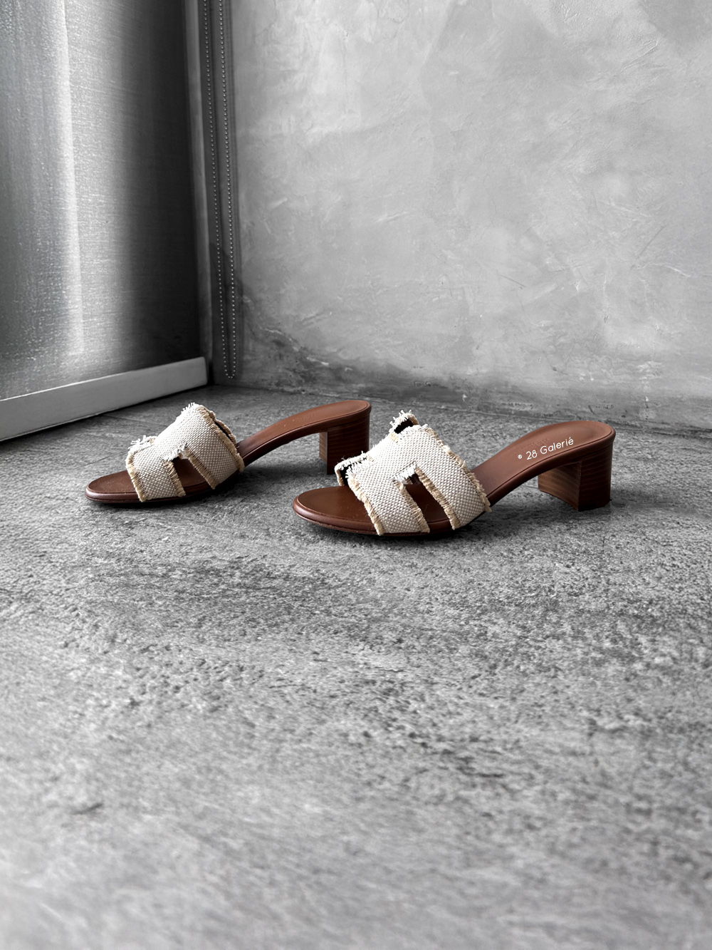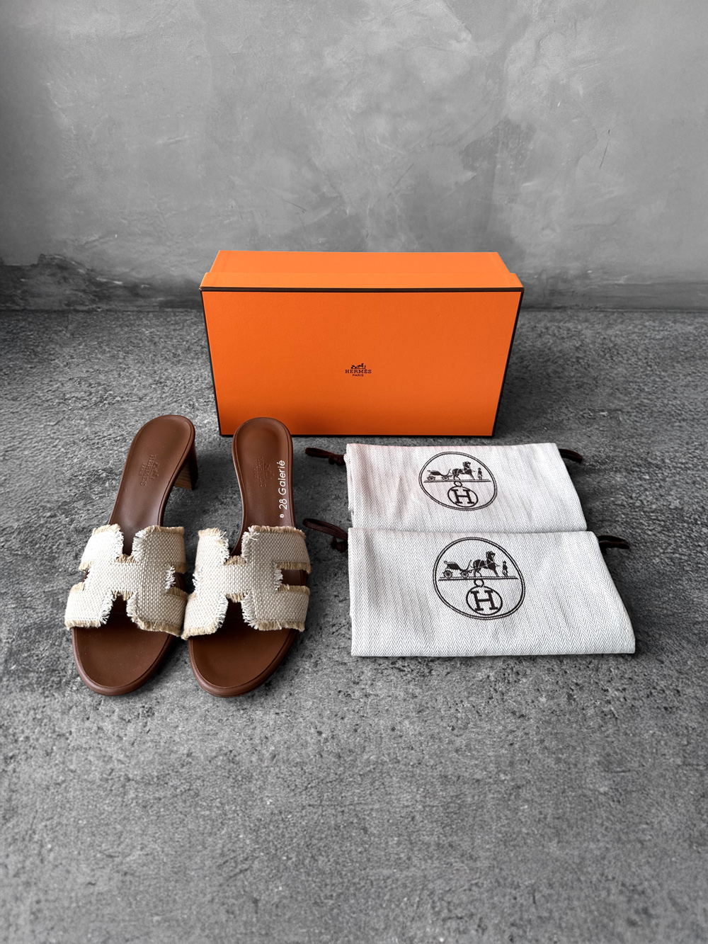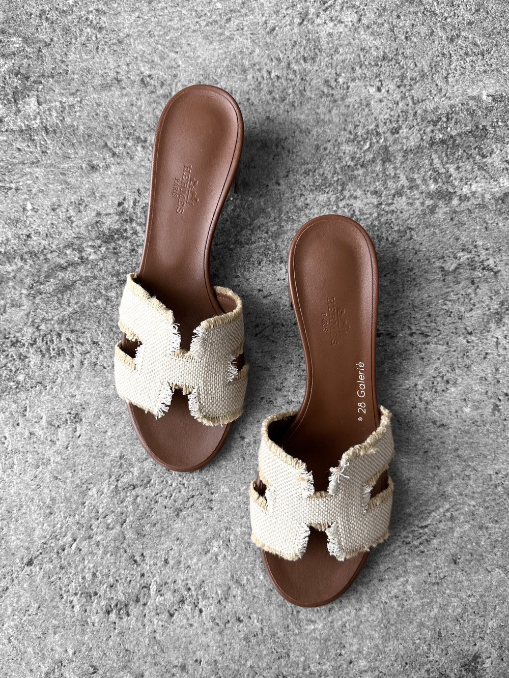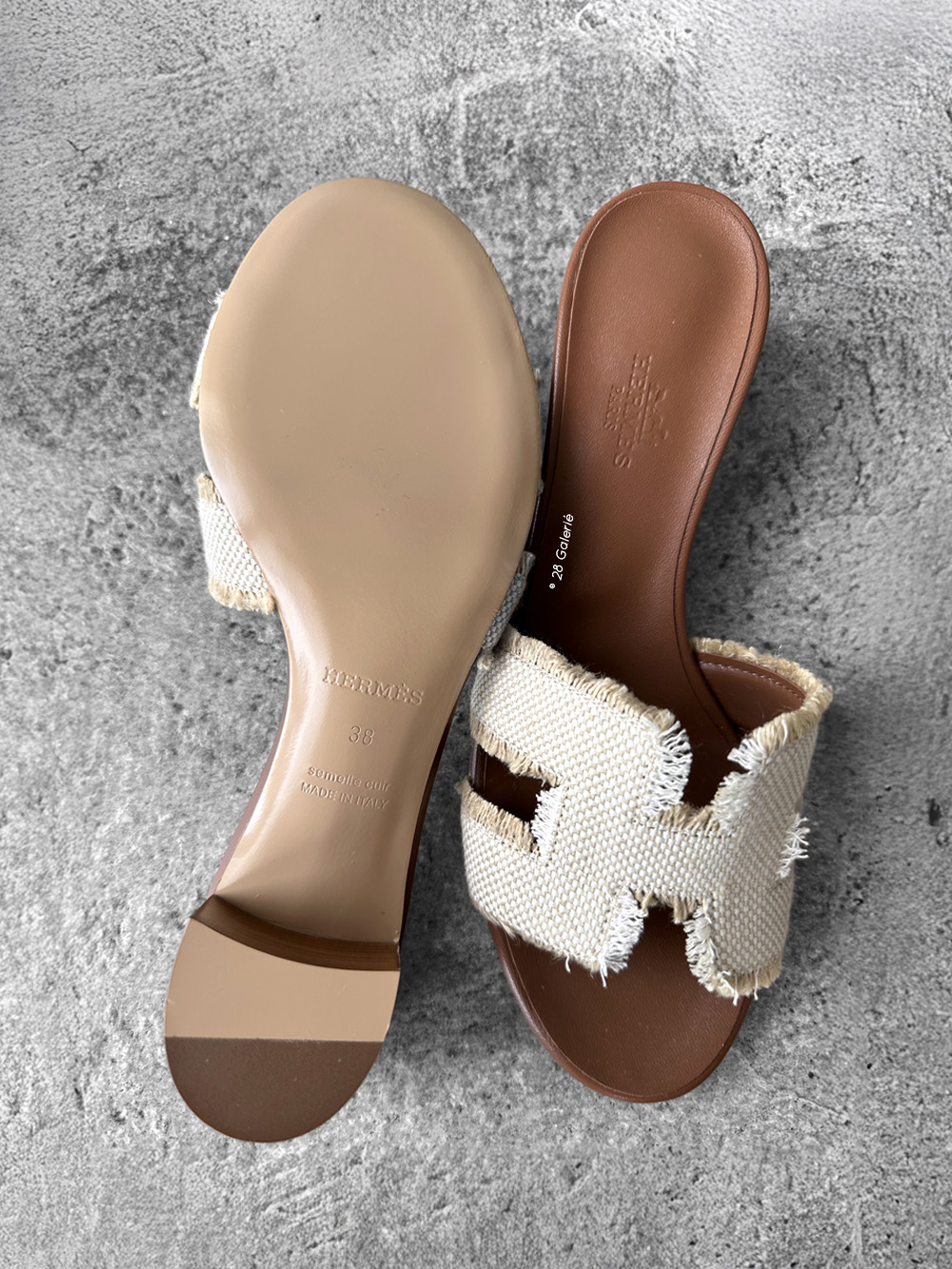 Hermes 38EU Beige Femme Oasis en Toile Fabric Slide Sandal