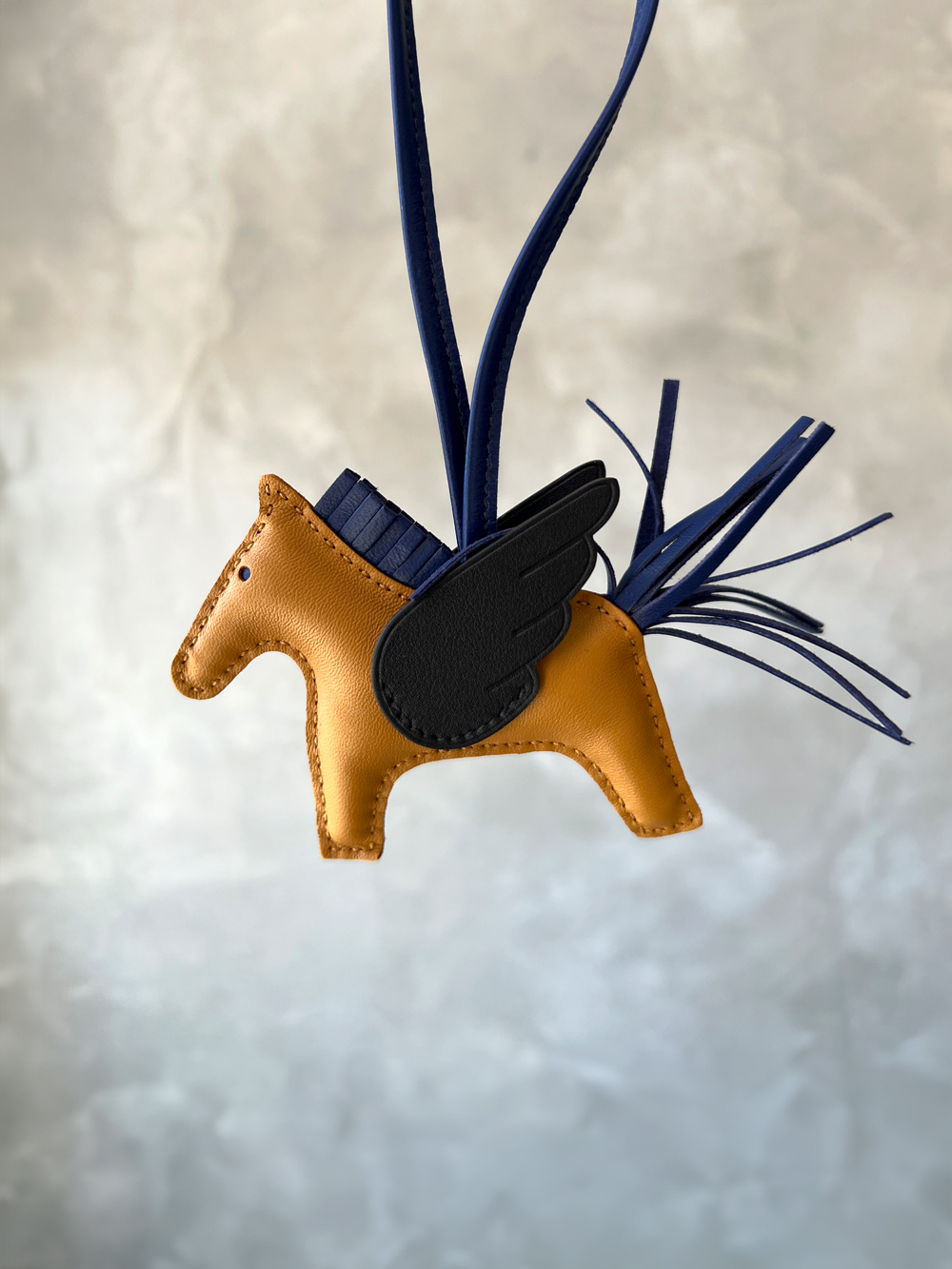 Hermes Rodeo Pegase PM charm in Sesame, Blue Sapphire and Black Agneau leather