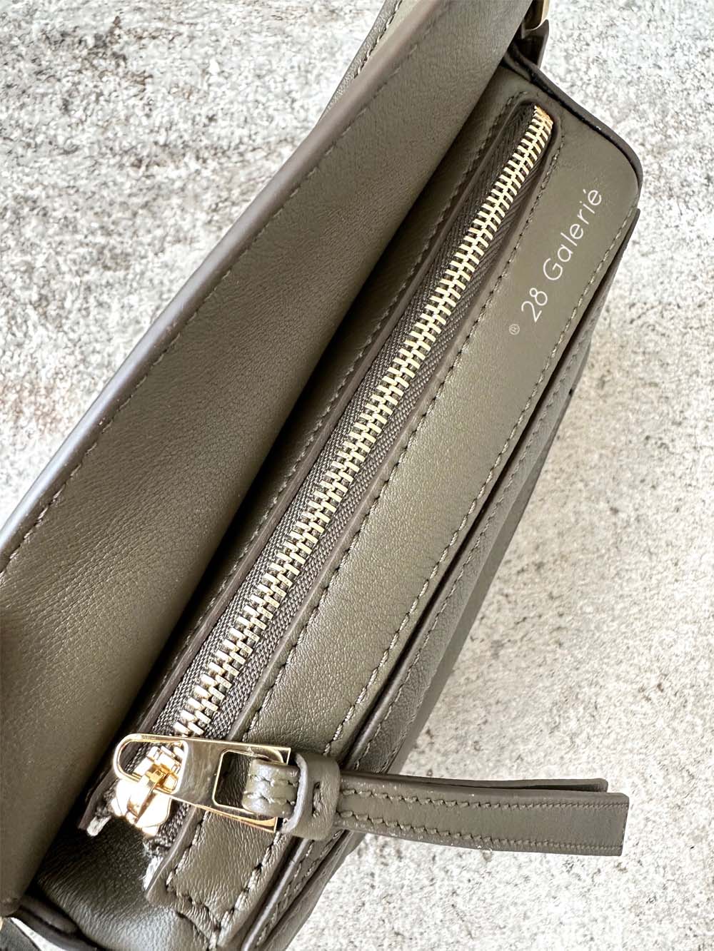 The geometric and functional design of this bag demands attention without a brand screaming on its face. If you like a minimalist style but also a statement piece, this mini puzzle bag is right for you! It can fit the biggest iphone, small wallet, keys, small vanity purse and hygiene essentials.