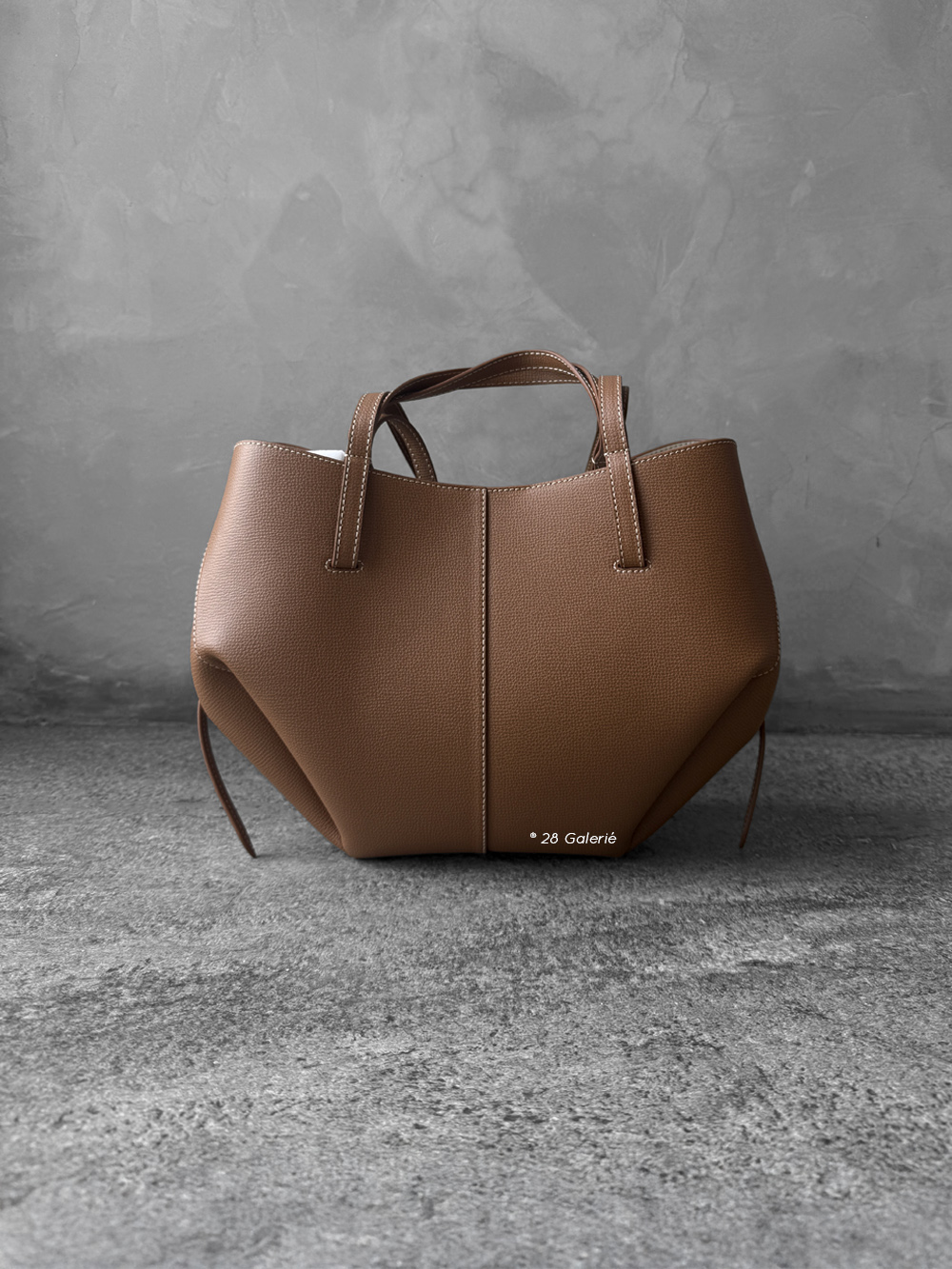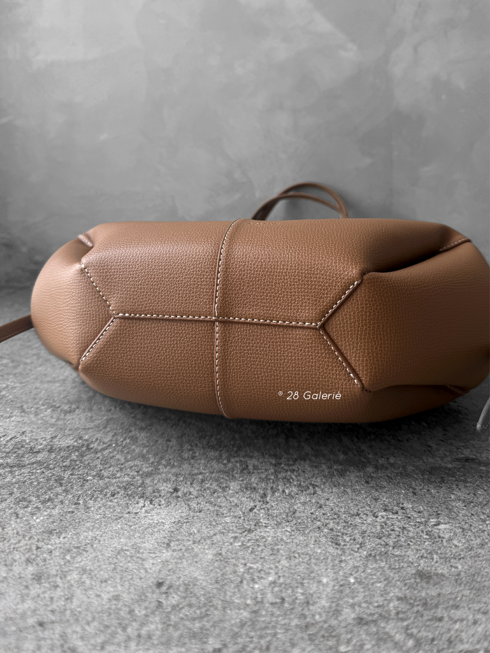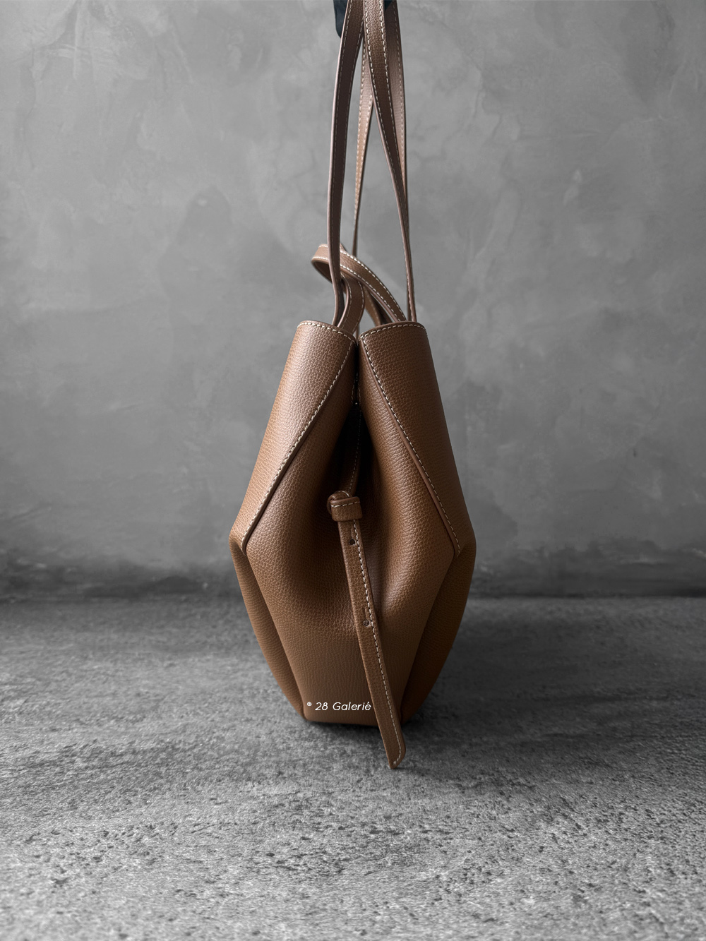 Polene Camel Mini Cyme in Texture Calfskin Leather with Suede Lining