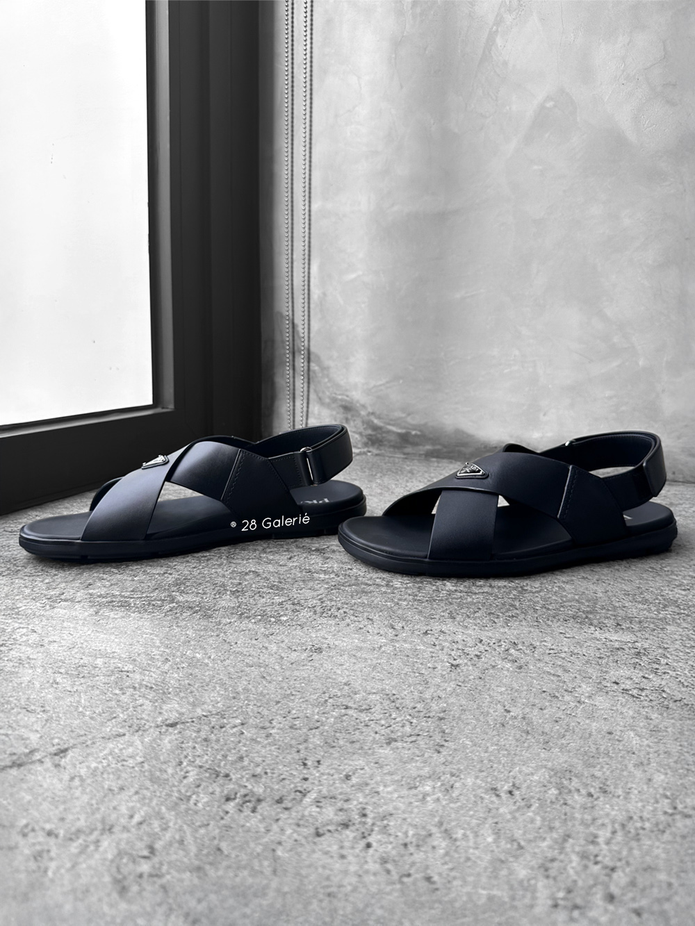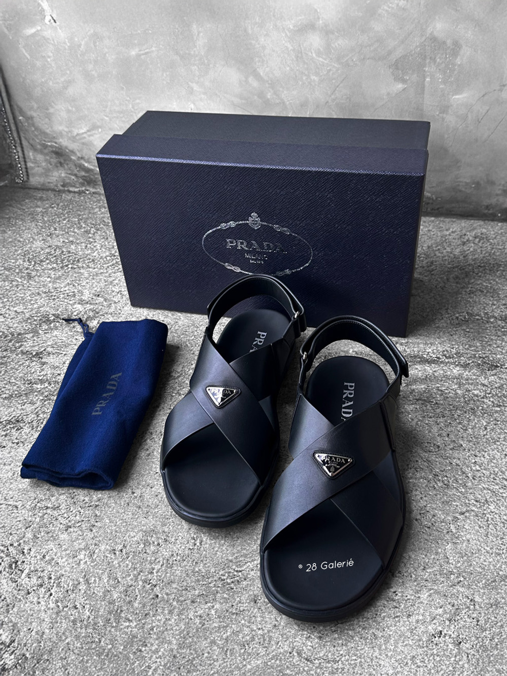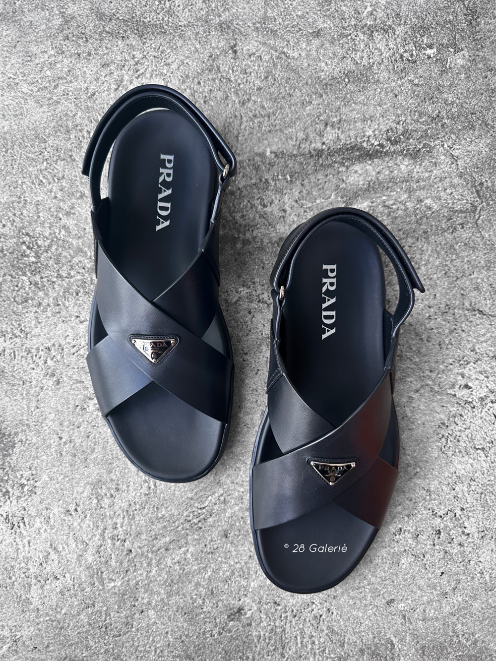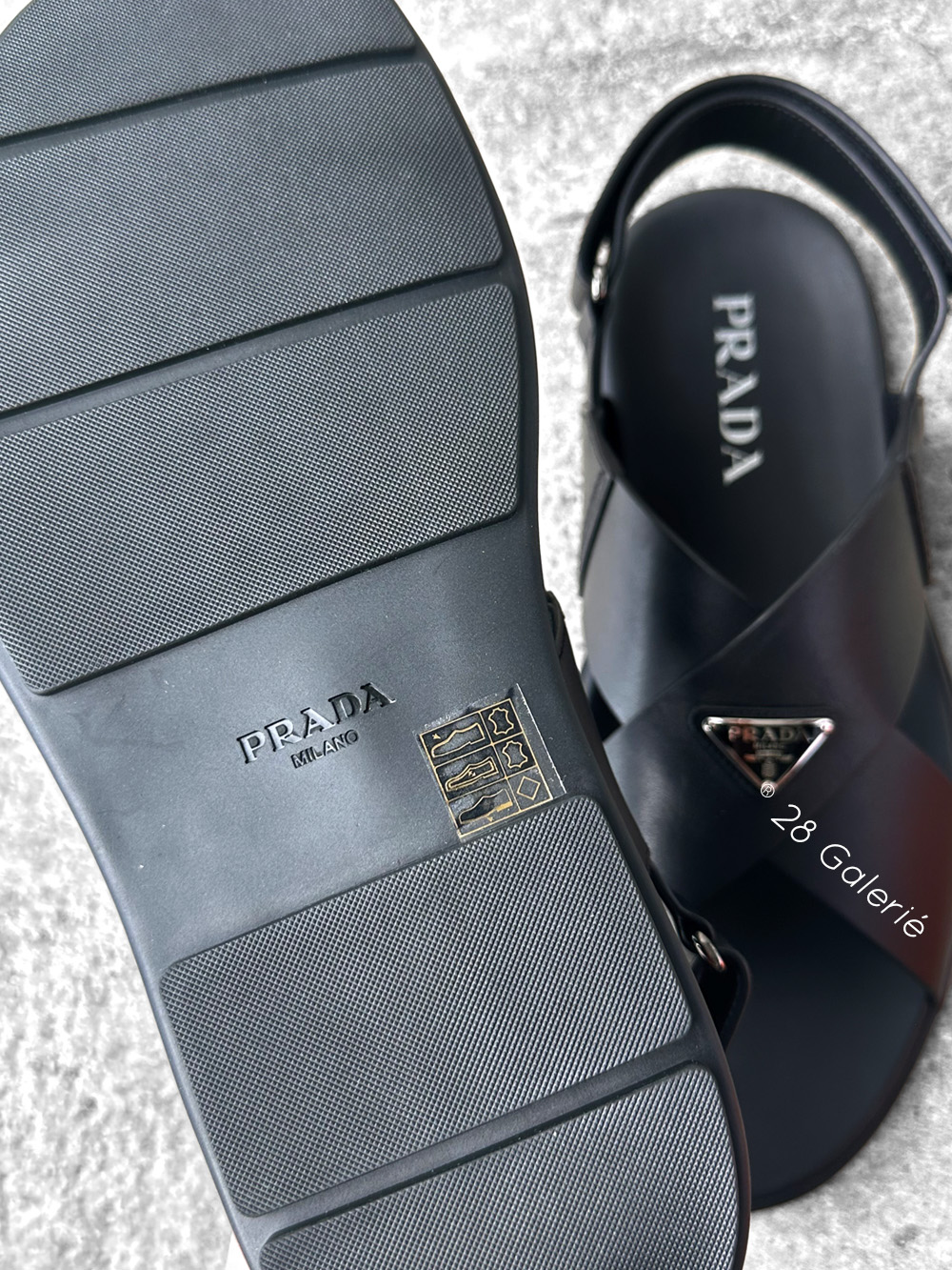 Prada Men’s 43EU Black Crisscross Sport Sandals in Lambskin Leather and Silver Hardware